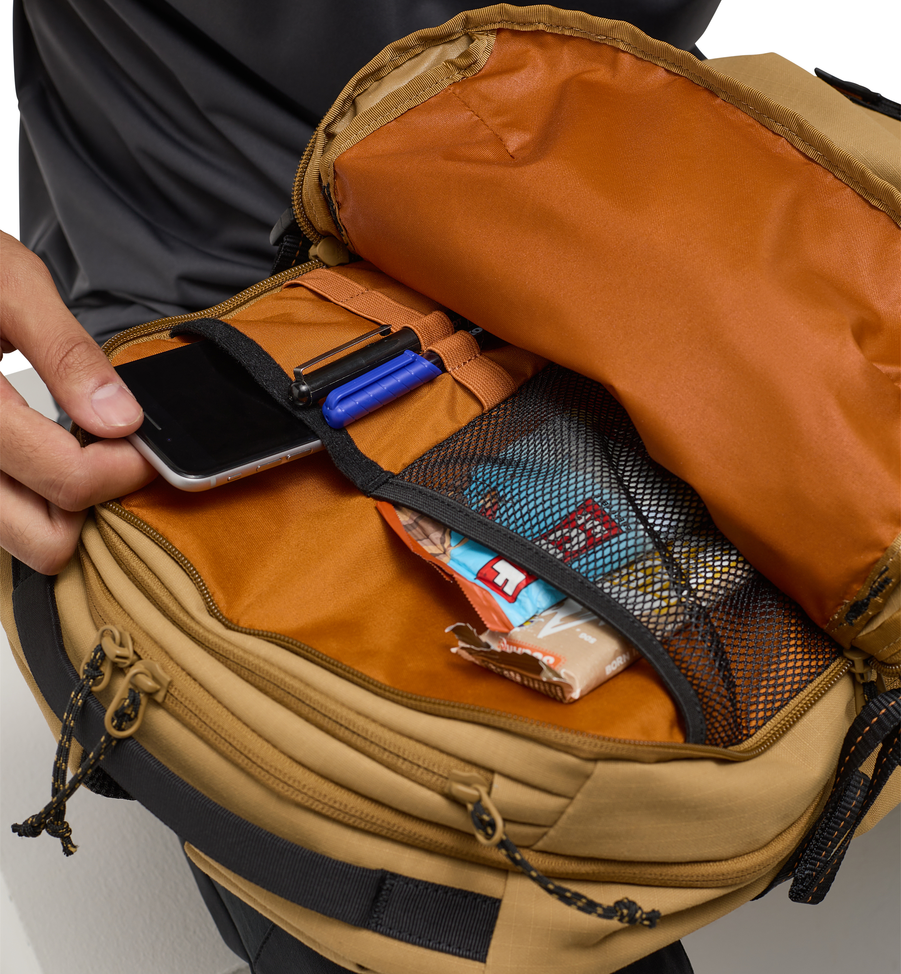 Jarve Multi o objemu 22 litrů, je batoh na Vaše městská i outdoorová dobrodružství. Svrchní materiál je 100% recyklovaný PAD s ripstopovou strukturou, který je pevný a odolný, aby vydržel i intenzivní užití. Je navržen tak, aby usnadňoval udržování vašeho outdoorového vybavení a každodenních nezbytností v pořádku a zároveň byl pohodlný na nošení. Jarve Multi 22 je vybaven množstvím chytrých úložných možností, praktická polstrovaná kapsa na notebook o rozměru 24x2,5x36 cm je umístěna v komoře blíže zádům, druhá komora a čelní hluboká zipová kapsa jsou vybaveny organizéry pro uložení drobností. Oranžová podšívka usnadňuje přehled při hledání uvniřt batohu. Zádová část i ramenní popruhy jsou komfortně vypolstrovány a podšity strukturovaným mesh materiálem pro lepší odvod potu. Odolné prostorné boční kapsy lze stáhnout elastickými šňůrkami. Objevíte také řadu upevňovacích bodů pro uchycení dalšího vybavení potřebného na cesty.