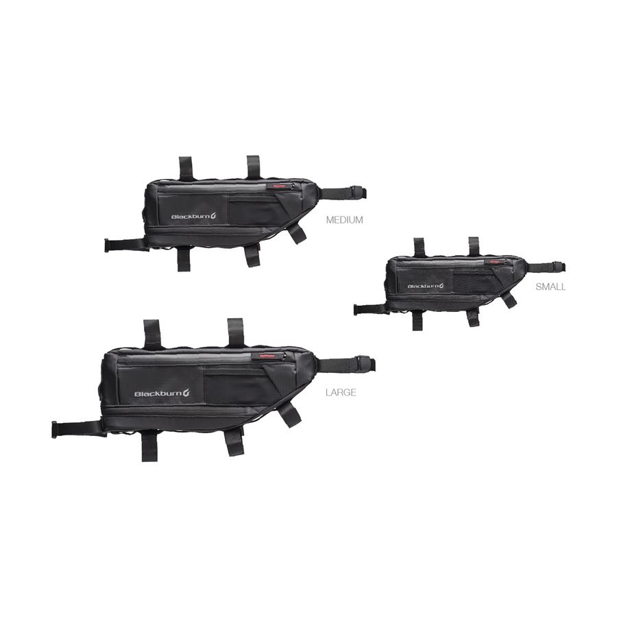 Rámová brašna se zvětšitelným objemem pro různé velikosti rámů: Small, Medium a Large. Jednotlivé přihrádky jsou perfektně promyšlené, nechybí ani otvor na protažení hadičky vodního rezervoáru. Brašna je voděodolná a díky adaptabilnímu upínacímu systému je přiděláte na každé kolo.