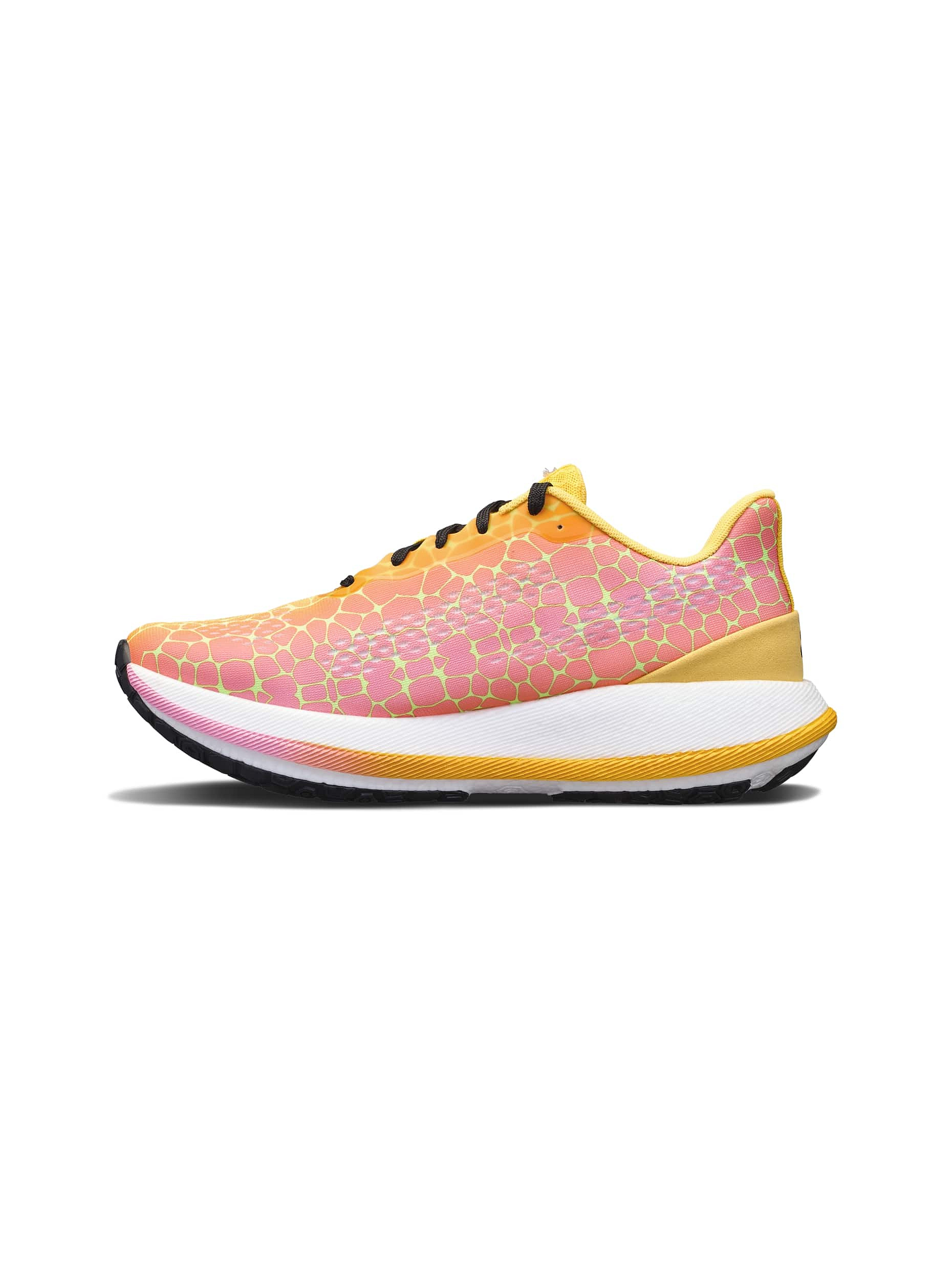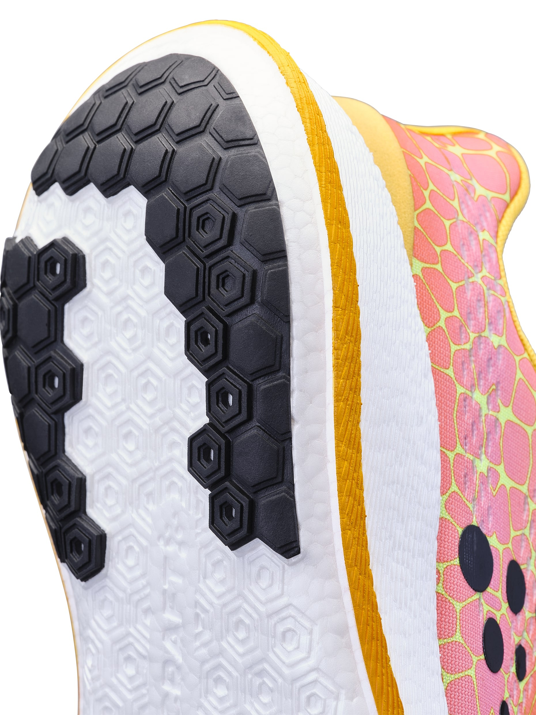 Nekompromisní měkkost a pružnost tlumící vrstvy se postará o to, že se při běhu budeš cítit jako v bavlnce. Široká základna zajistí skvělou stabilitu a bezešvý svršek dokonale obepne chodidlo.