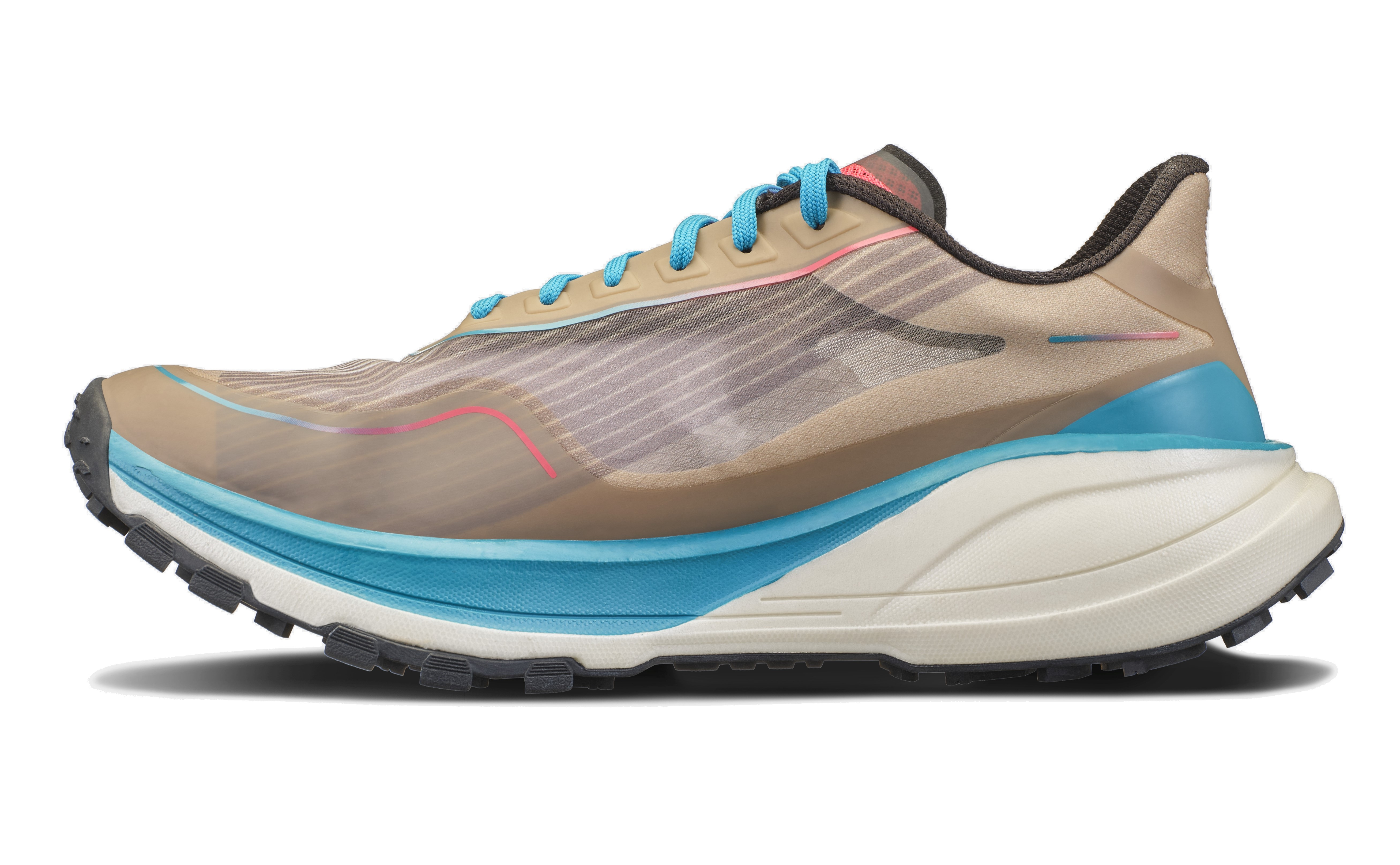 Svršek je tvořen jednovrstvou TPU síťovinou, která je extrémně lehká, flexibilní a přitom odolná. Pure Trail je čistou ukázkou inovace, která běžcům poskytuje maximální výkon a komfort zároveň.