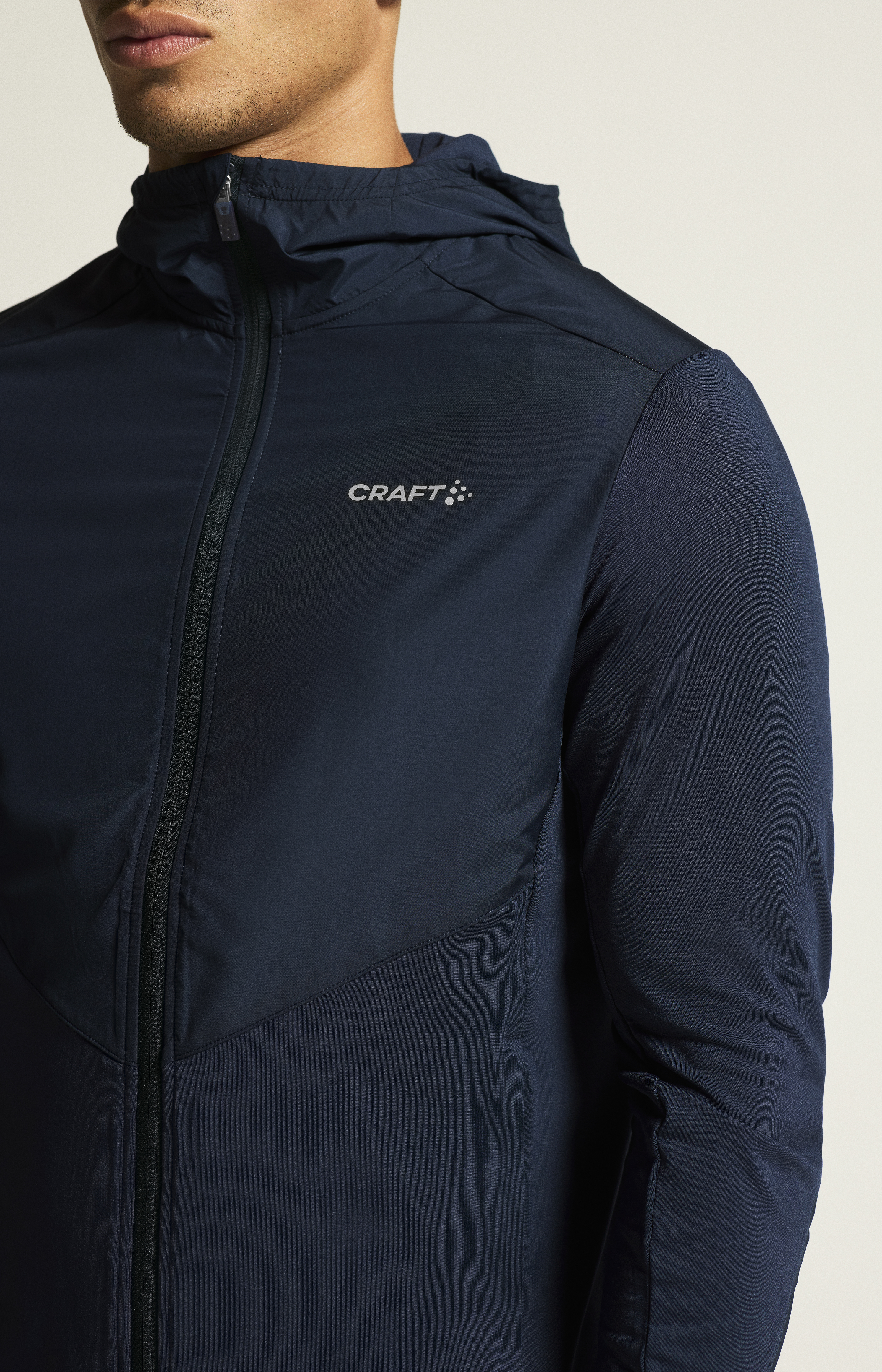 Pánská celorozepínací sportovní bunda s kapucí CRAFT ADV Essence Jersey Hood 2 spolehlivě ochrání před větrem. Torzo je vyrobeno z příjemného a teplého materiálu pro optimální komfort.