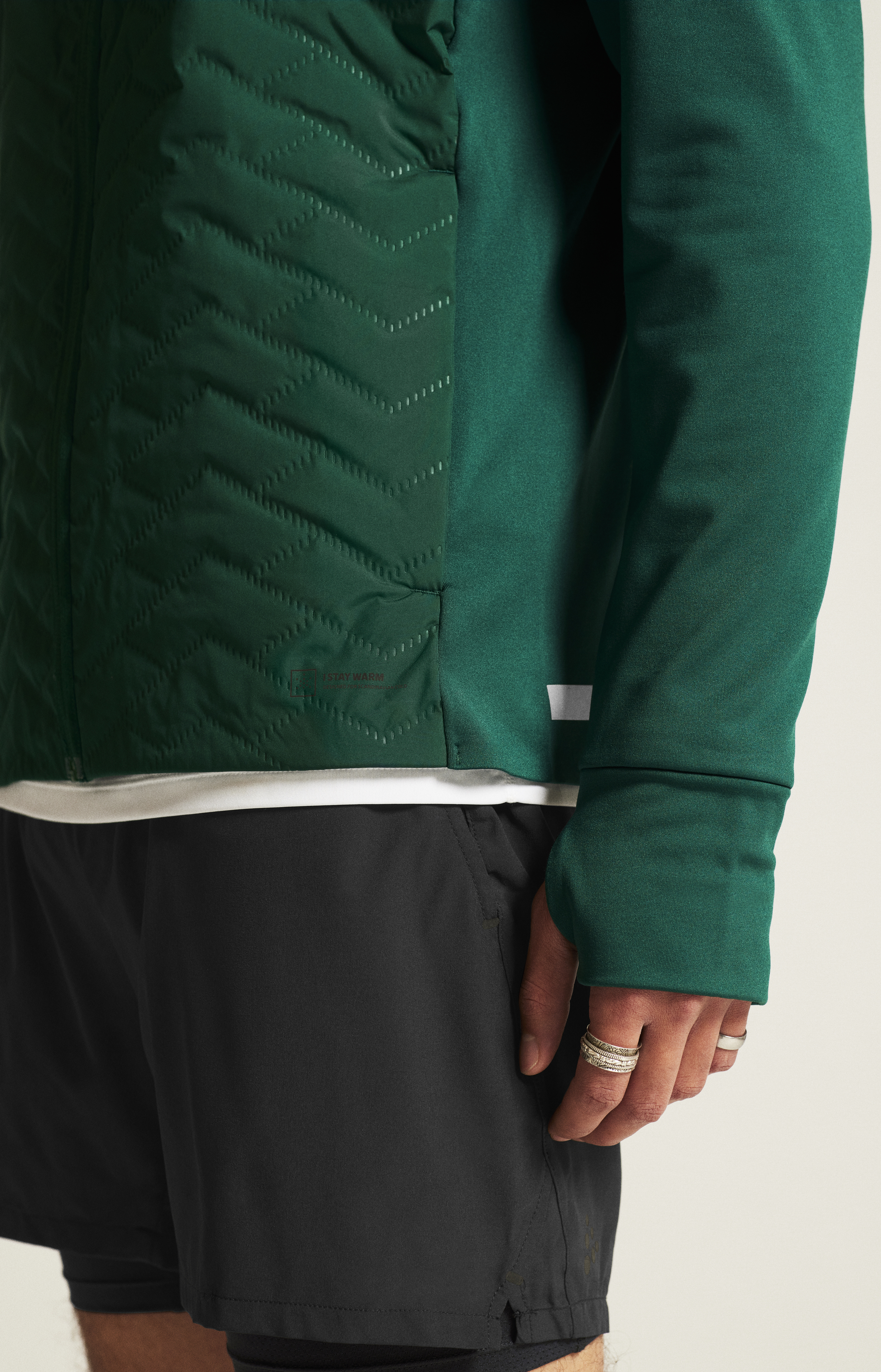 Zadní díl a rukávy: 88% recyklovaný polyester, 12% elastan