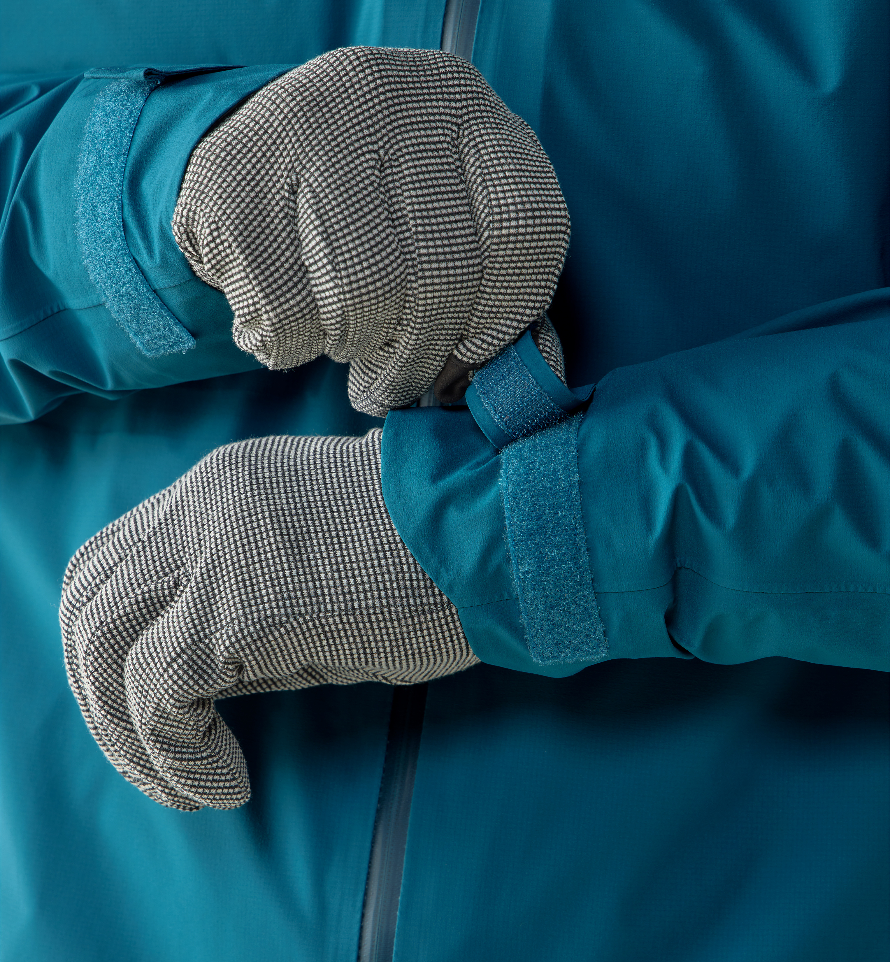 - předtvarované rukávy, konce lze regulovat pomocí velcro pásku