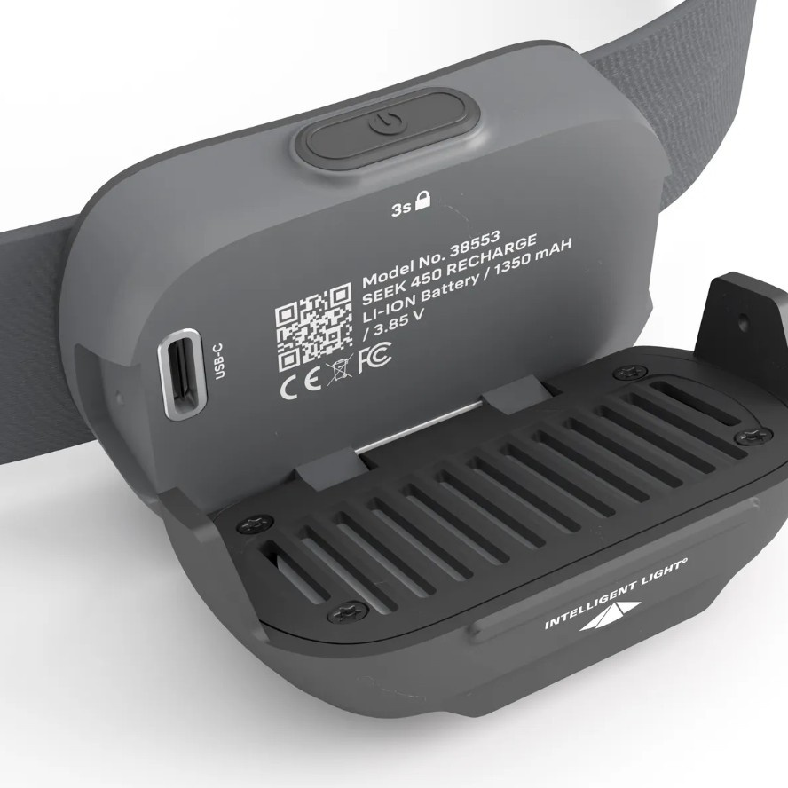 SEEK 450 s integrovanou dobíjecí Li-Ion baterií a 450 lumeny, je nejvýkonnějším modelem řady kompaktních čelovek Seek. Technologie Silva Intelligent Light - dvě bílé diody díky optice čoček rovnoměrně prosvítí prostor do dálky i stran, červená dioda pro tlumené, okolí nerušící svícení. Indikace stavu baterie formou zelené a červené diody, svítí-li po vypnutí čelovky zelená dioda, je stav baterie nad 50%, červená dioda indikuje kapacitu baterie pod 50%. Ve výklopné části svítilny je zabudovaný pasivní hliníkový chladič. Praktický zámek tlačítka proti nechtěnému zapnutí čelovky. Komfortní elastická čelenka je 25 mm široká a z vnitřní strany má silikonový střed pro lepší stabilitu na hlavě, o nastavení obvodu se starají dvě rychlonastavitelné spony. Svítilna se nasazuje pomocí zadního klipu na elastickou čelenku a díky klipu lze snadno nasadit např. na hrudní popruh batohu… Seek 450 odolává tryskající vodě ze všech stran - IPX5. Jako hlavní materiál byly použity recyklované plasty. Celková hmotnost čelovky je 70 g. Prodloužená záruka 5 let na čelovku a 2 roky na baterii.