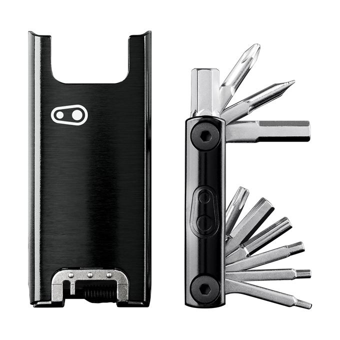 NÁŘADÍ vysokopevnostní ocel • nýtovač 8 / 9 / 10 / 11 / 12 rychlostní řetězy • centrovací klíče #0, #1, #2 a #3 • inbusy 2 / 2,5 / 3 / 4 / 5 / 6 / 8 mm • šroubováky křížový a plochý • Torx klíč T25 • otvírák na lahev