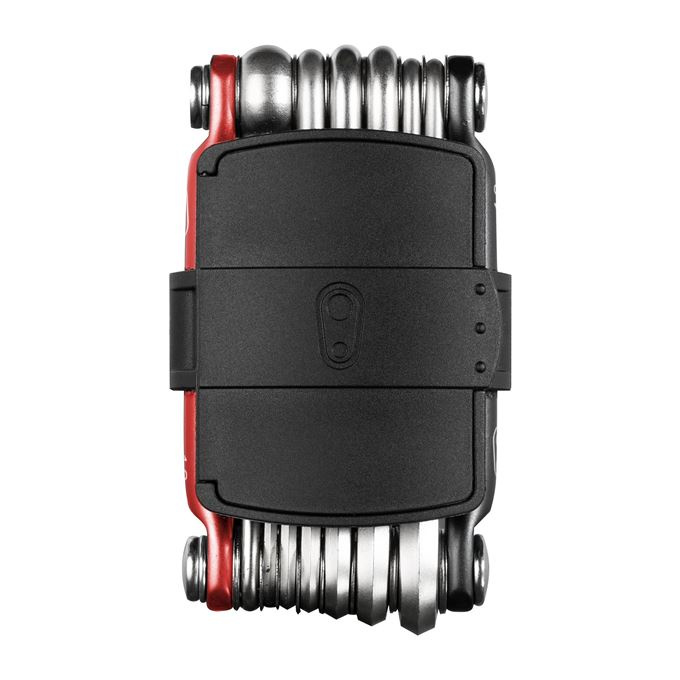 Lehké 13funkční nářadí s integrovaným knotovačem na opravu bezdušových plášťů a úložným prostorem, který obsahuje náhradní knoty a místo pro rychlospojku řetězu.