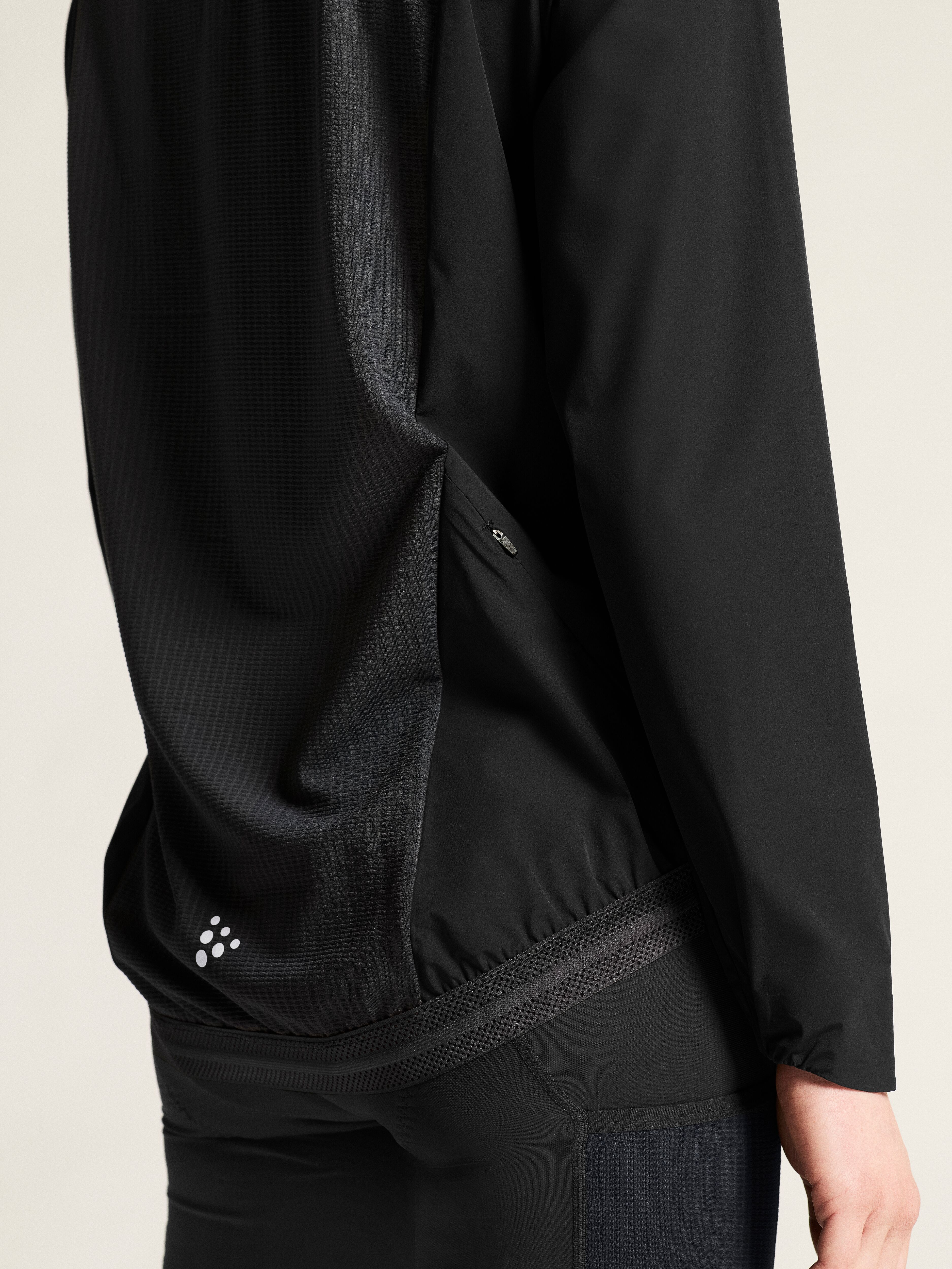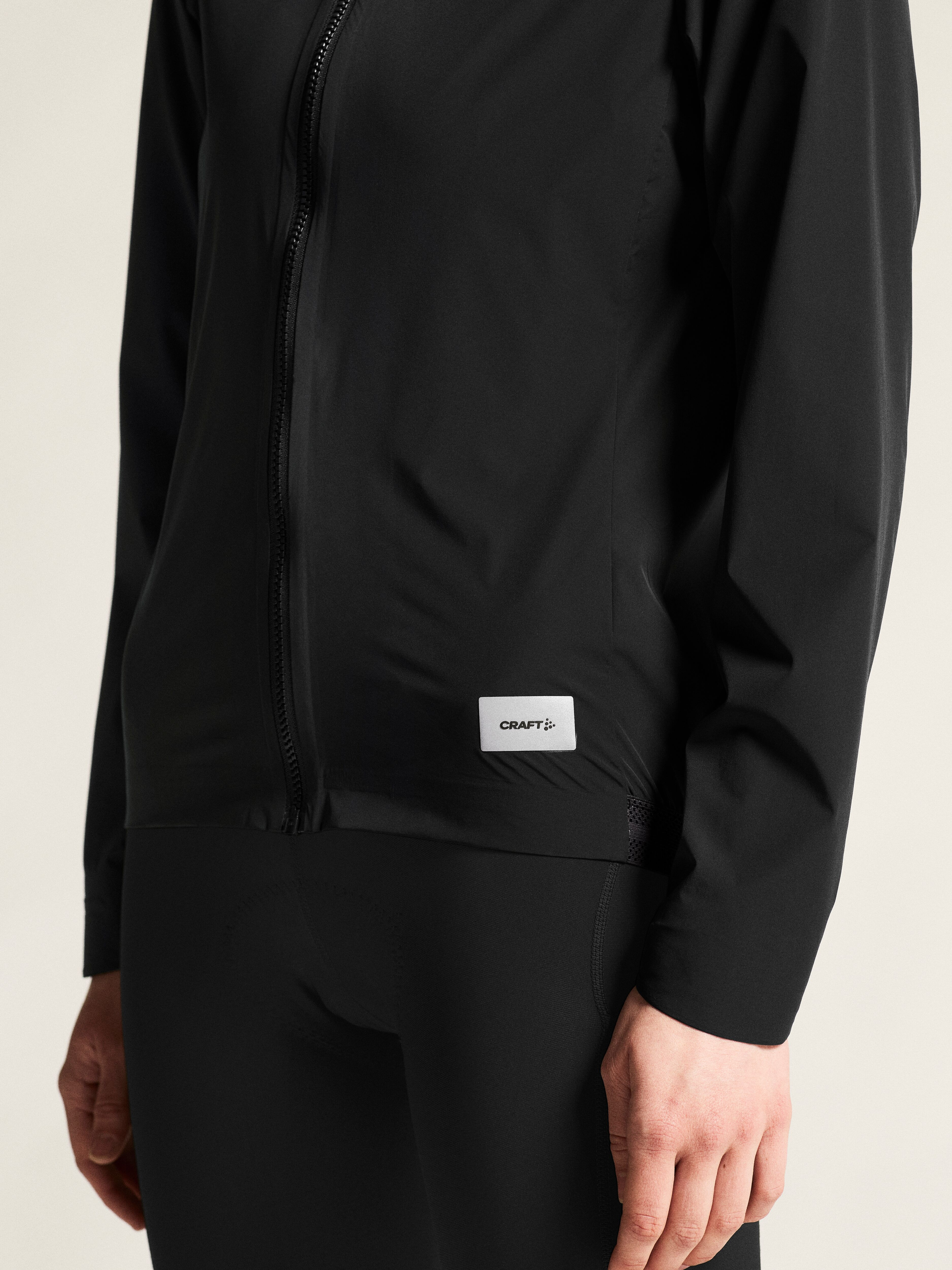 Cyklistická bunda CRAFT Endur Light Wind je velmi lehká, větru odolná a vodu odpudivá bunda, která je důležitým doplňkem pro každou vyjížďku v proměnlivém nebo větrném počasí. Je vyrobena z vysoce funkčního elastického materiálu, který zajistí optimální termoregulaci i při intenzivním švihu. Prodyšnost a ventilaci výrazně zlepšuje velký meshový panel na zádech. Bunda je ergonomicky přizpůsobená cyklistickému posedu. Pružný spodní lem má z vnitřní strany silikonový potisk. Konce rukávů jsou částečně staženy pružnou gumou. Na pravém boku najdete kapsu na zip.
