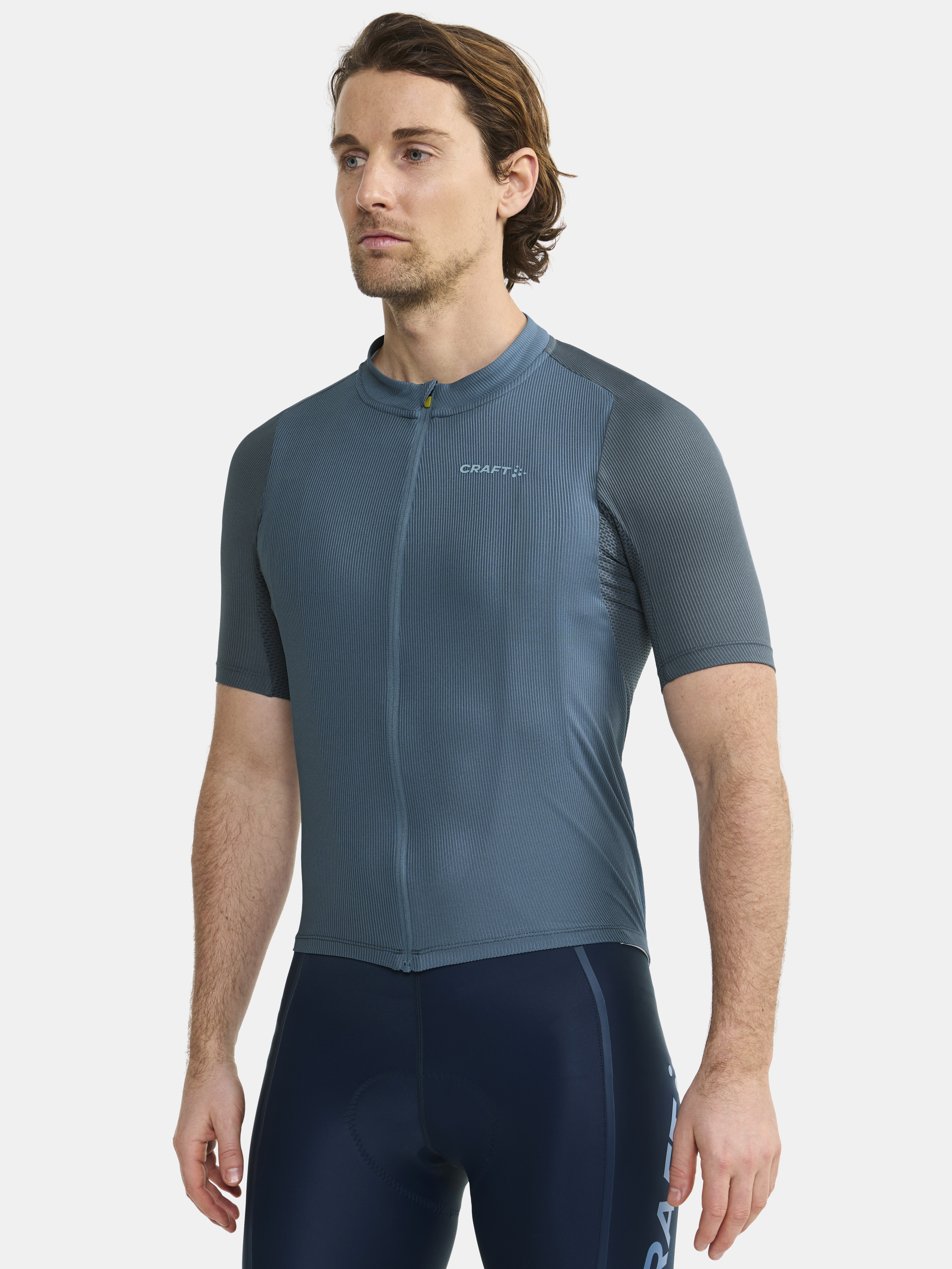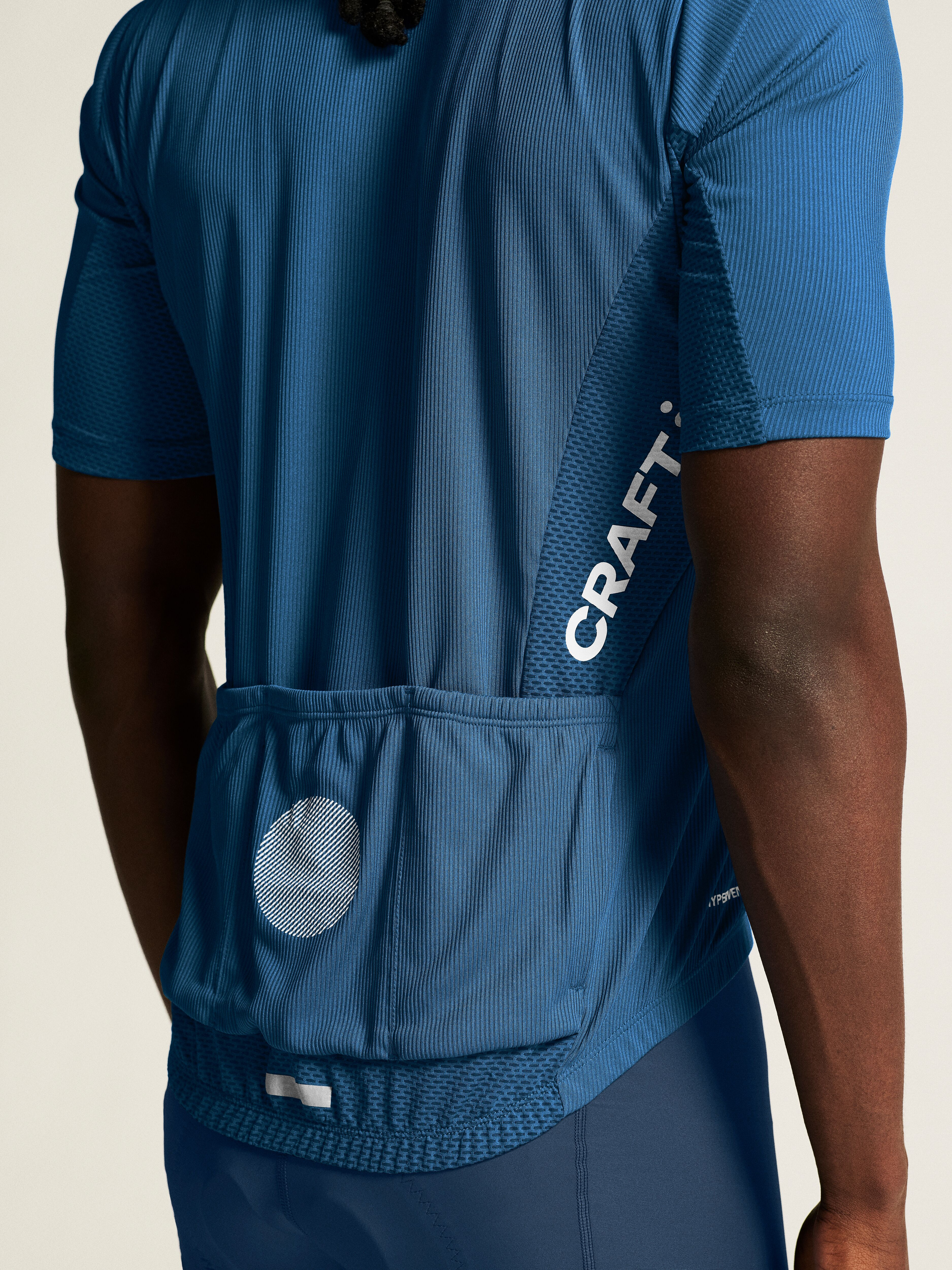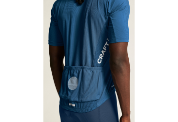 Pánský technicky pečlivě propracovaný cyklistický dres CRAFT ADV Endur s rib strukturou. Materiál: 100% recyklovaný polyester; boky: 87% recyklovaný polyester, 13% elastan - výborný odvod potu, rychleschnoucí, chladivý efekt - ergonomický střih - meshové panely na bocích, z vnitřní strany rukávů, za krkem a v zadní části dresu - zip podložený légou - speciální tvarování límce v oblasti zátylku pro vyšší komfort při jízdě - ve spodní části vzadu stažení do gumy se silikonovým potiskem z vnitřní strany - v zadní části trojdílná kapsa plus kapsička na zip