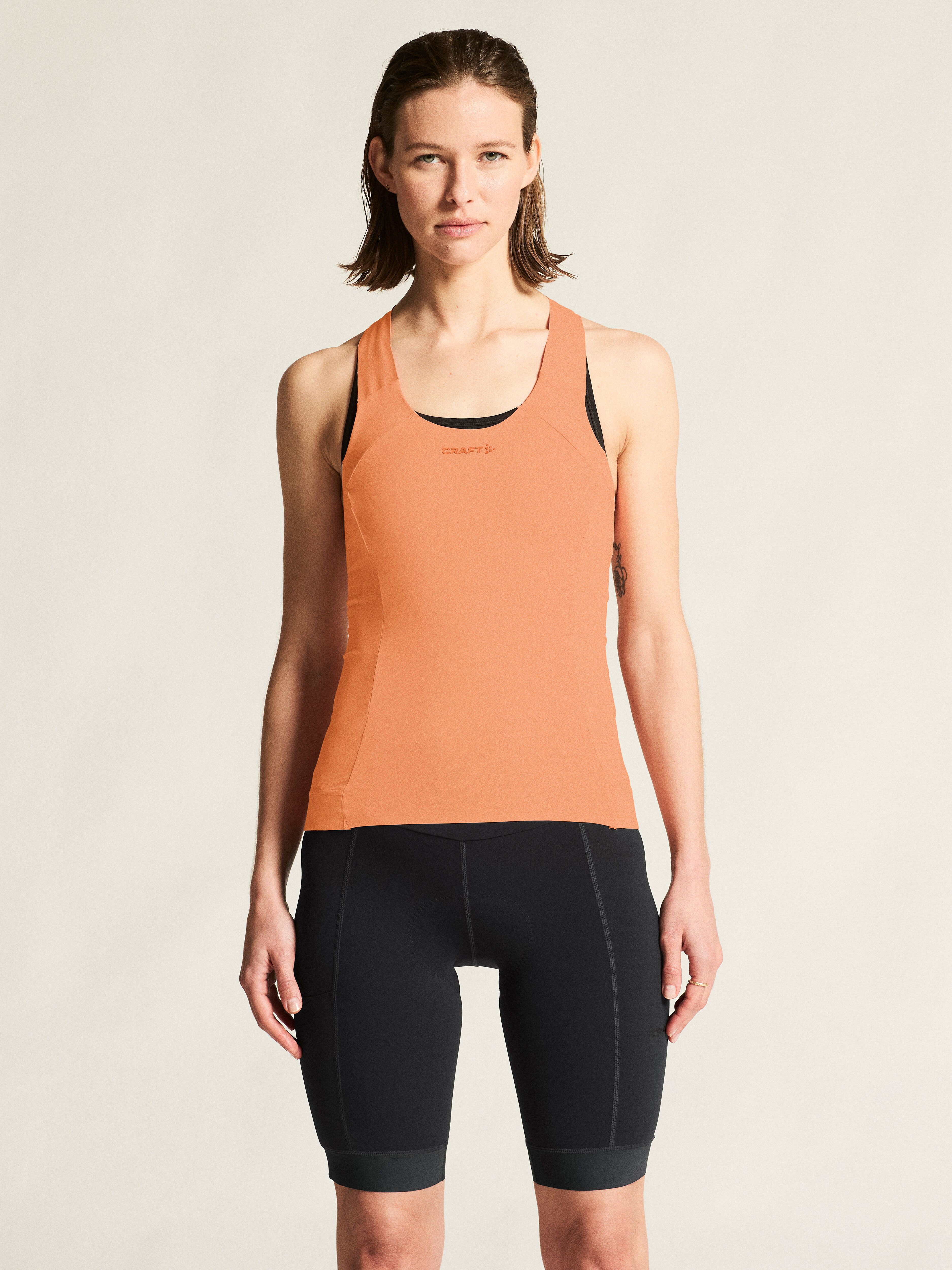Cyklistický nátělník CRAFT Endur má příjemný funkční materiál, který se díky své elasticitě, skvěle přizpůsobí tělu cyklistky. Rychlý odvod vlhkosti a vysokou prodyšnost oceníte při každé vyjížďce. V zadní části jsou dvě kapsy. V zadní části spodního lemu je pružná guma, na jejíž vnitřní straně je silikonový potisk.