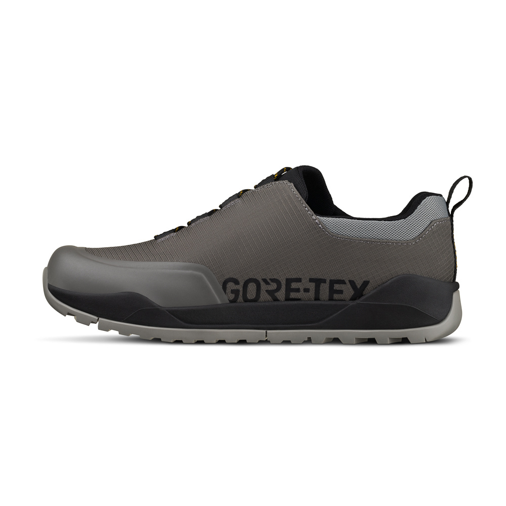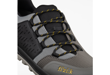 A rugged, functional, lace-up shoe engineered for e-mountain biking to provide grip and control while riding on flat pedals and comfort and confidence while hiking. ERGOLACE Ergonomic lace-up closure for an anatomical fit RIPSTOP FABRIC Woven fabric resistant to tearing and ripping X2 OUTSOLE FLAT Flat pedal Vibram grip for better traction on and off the bike