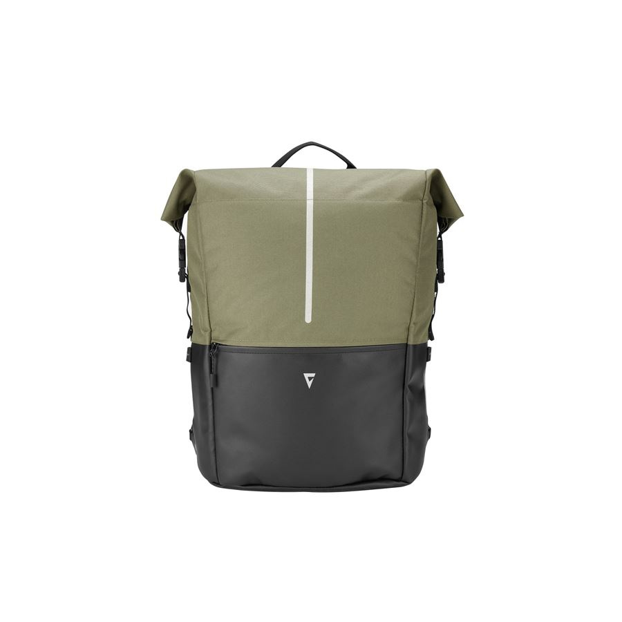 Vlastnosti design 2v1 s odepínatelnými ramenními popruhy umožňuje rychlou a snadnou přeměnu z brašny na batoh a zase zpět rychloupínací montážní systém G-2 pro snadné a bezpečné uchycení a zároveň rychlé odepnutí hluboký úložný prostor s rolovacím uzávěrem přihrádka na notebook, kapsa na lahev a dvě snadno přístupné kapsy odolný materiál s vodoodpudivou úpravou (složení materiálu: Polyester, PVC) reflexní prvky a boční úchyty pro zadní světlo součástí balení je pláštěnka výrazné žluté barvy pro lepší viditelnost v dešti objem: 20 litrů rozměry: 56 x 26 x 12 cm hmotnost: 1,2 kg v nabídce jsou dvě barevná provedení: černá, zelená