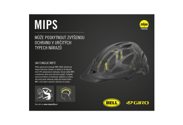 MIPS (Multi-Directional Impact Protection System) poskytuje zvýšenou ochranu proti působení rotačních sil na hlavu. Více na www.MIPSprilby.cz.