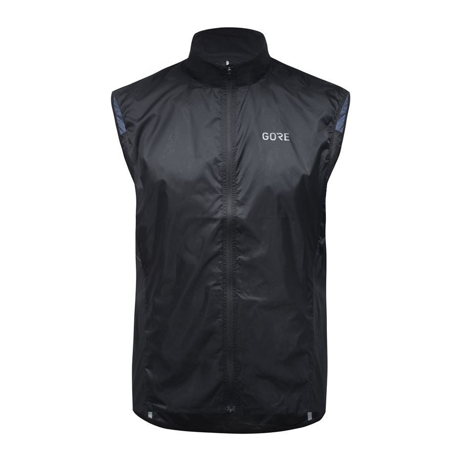 PODROBNOSTI A MATERIÁLY Částečné použita membránová technologie GORE-TEX INFINIUM™ s GORE® WINDSTOPPER®: zcela větruodolná, velmi dobře prodyšná a voděodolná ochrana Snadno sbalitelný, lehoučký, funkční materiál Vysoký límec chrání před větrem Zip po celé délce vesty Zadní úložná kapsa na zip Poloprůhledný nylon jako vnější vrstva Vysoce reflexní barevná páska, detaily a logo