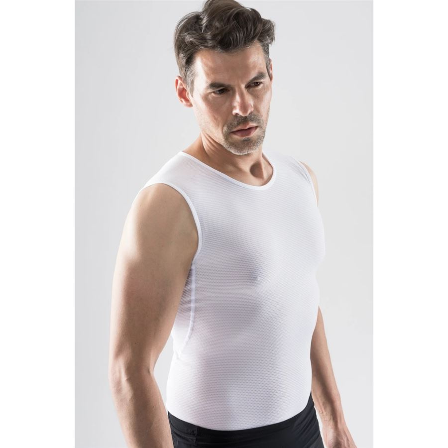 Základní vrstva pod cyklistický dres nezbytná pro chladnější dny, kdy při cestě vzhůru oceníte schopnost materiálu odvádět pot od těla a při sjezdu pak tkanina zabrání prochladnutí. Triko bez rukávů je samozřejmě vhodné pro jakékoliv outdoorové aktivity především ty aerobní.