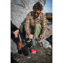 Trek Pot UL 0,8 l je minimalistický ultralehký hrnec s poklicí. Tento hrnec je vyroben z tvrdě eloxovaného hliníku a je o 30 % tenčí než ostatní modely řady Trek Pot, takže je neuvěřitelně lehký, dosáhli jsme hmotnosti pouhých 120 g. Víko se silokonovým gripem má integrovaný cedník a praktický nalévací otvor. Skládací rukojetě hrnce jsou vyrobeny z titanu. Ve složeném stavu má hrnec elegantní, minimalistický profil. Je perfektním doplňkem k vařiči Primus Micron Stove III a vejde se do něj 100 gramová plynová kartuše. Součástí balení je odlehčený nylonový vak.