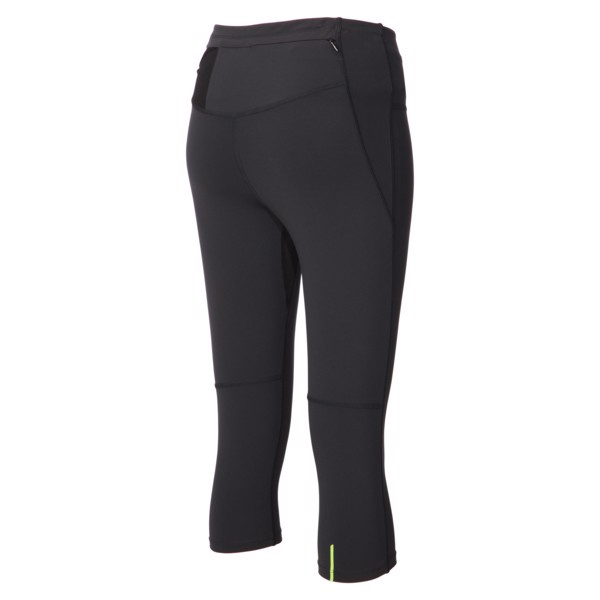 Pevný materiál dámských 3/4 elasťáků nabídne vysoký komfort, odolnost a tepelný komfort. Perfektní střih kalhot je složen z několika dílů, které podporují přirozený pohyb. I přes použití plochých švů je velmi dobře řešen rozkrok, kde žádné švy nezasahují do míst, kde dochází k výraznému tření. Zadní díl kalhot je odvětraný meshovým materiálem, jsou zde také umístěny dvě kapsy na gel a jedna centrální kapsa na zip. Stahování v pase je řešeno do kříže, elastickým popruhem, šňůra by tedy neměla zapadnout. Reflexní doplňky zajistí dobrou viditelnost za šera. BEST IN TEST TRAIL RUNNING MAGAZINE UK 4/2017 Materiál: 92% polyamid 8% lycra 94% polyster coolmax, 6% lycra (mesh) UPF 50+ Váha: 191 g