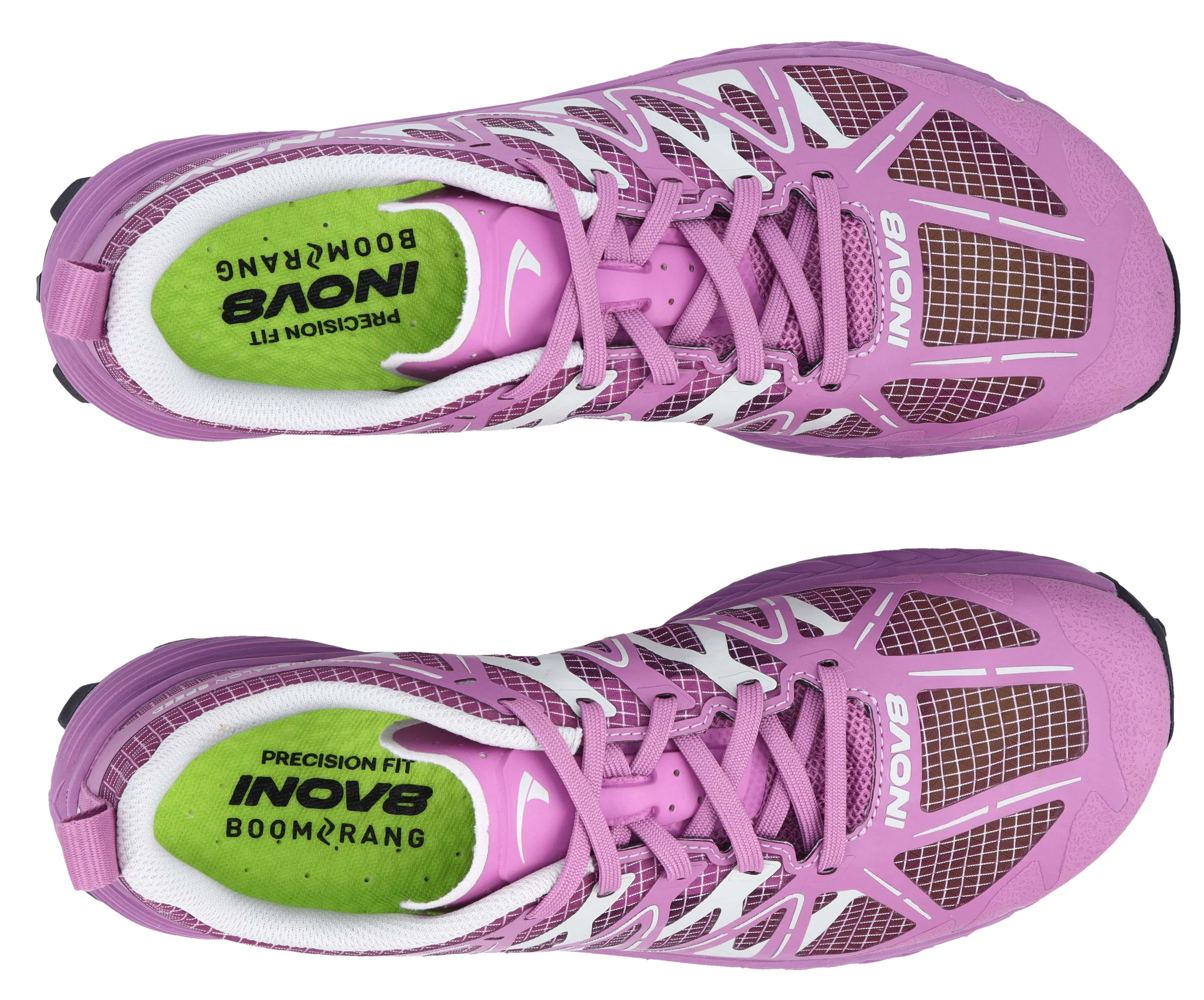 Stabilizační kolébka od tkaniček až po tlumicí vrstvu zajišťuje bezpečnou fixaci nohy v jakémkoliv tempu i sklonu. Tato úzká varianta Precision má speciálně rozšířený prostor na palec, který umožňuje přirozený a efektivní odraz, což ocení každý trailový běžec.