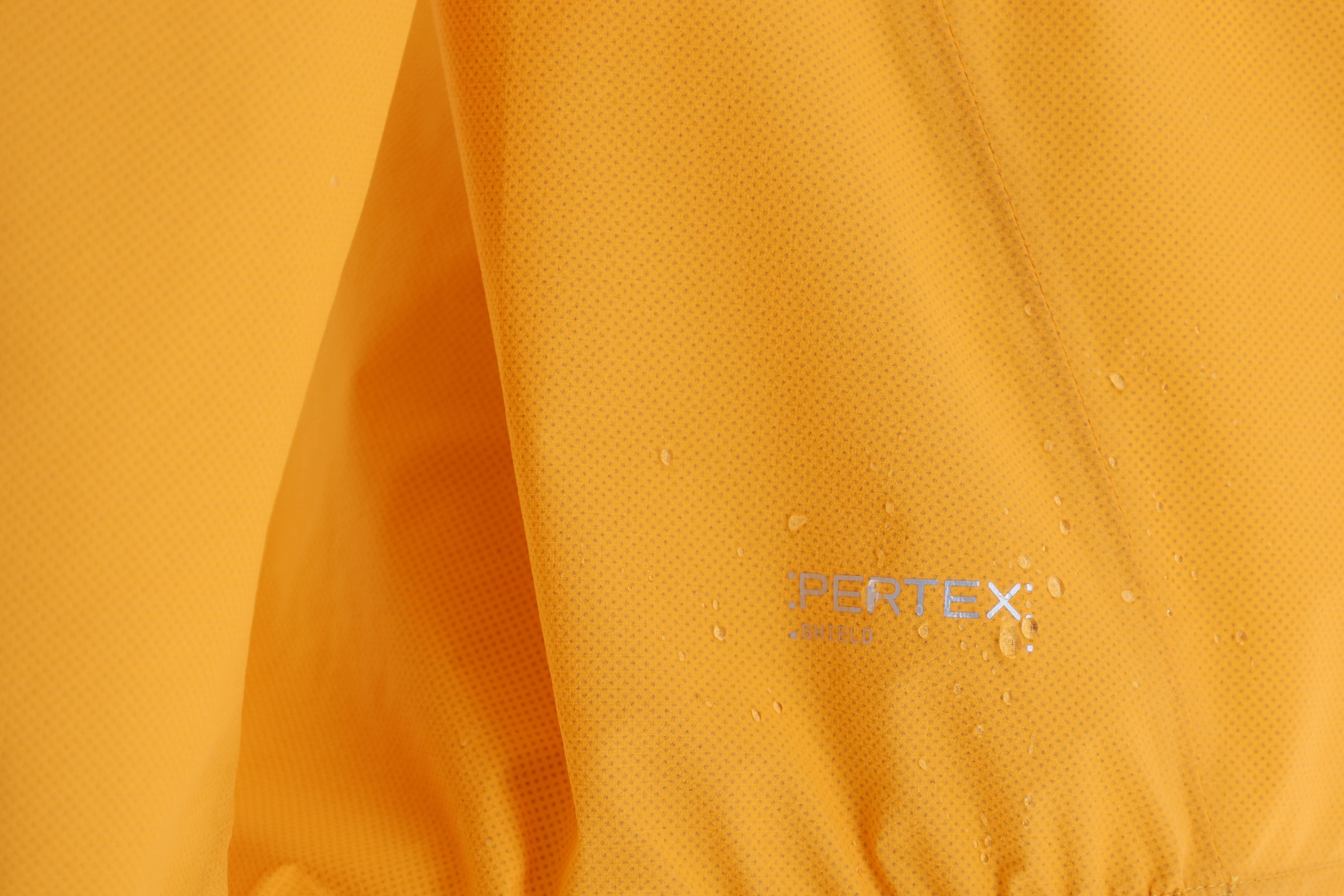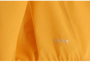 Základním kamenem je ověřená 2.5L membrána Pertex Shield s parametry 20.000 / 20.000. Jedná se o vodní sloupec a prodyšnost dle metody B-1. Obě tyto hodnoty patří mezi to nejlepší, co si může běžec přát. 20.000 mm vodního sloupce podpořený povrchovou DWR úpravou odolá i intenzivní průtrži mračen ve vyšších horských polohách a prodyšnost 20.000 B-1 zajistí efektivní odvod potu i při vysoce intenzivním pohybu. Tyto hodnoty s přehledem splňují kriteria všech běžeckých závodů, kde je nepromokavá bunda součástí povinné výbavy.