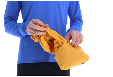Dalším klíčovým prvkem je sbalitelnost. STORMSHELL se balí do vlastní kapsy a výsledkem je miniaturní balíček, který se vejde i do kapsy kalhot, nebo ledvinky a v batohu nezabere prakticky žádné místo.