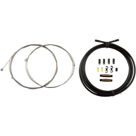 Špičkový silniční/MTB brzdový kit. Superlehký 5 mm bovden L3 L3 Lubricant vodotěsný systém optimalizuje funkci systému Nerez Slick polished - bezpotahové lanko 3000 mm bovdenu, zadní lanko 2350 mm Součastí kitu jsou všechny koncovky, pro lanka i bovdeny + návleky na ochranu rámu