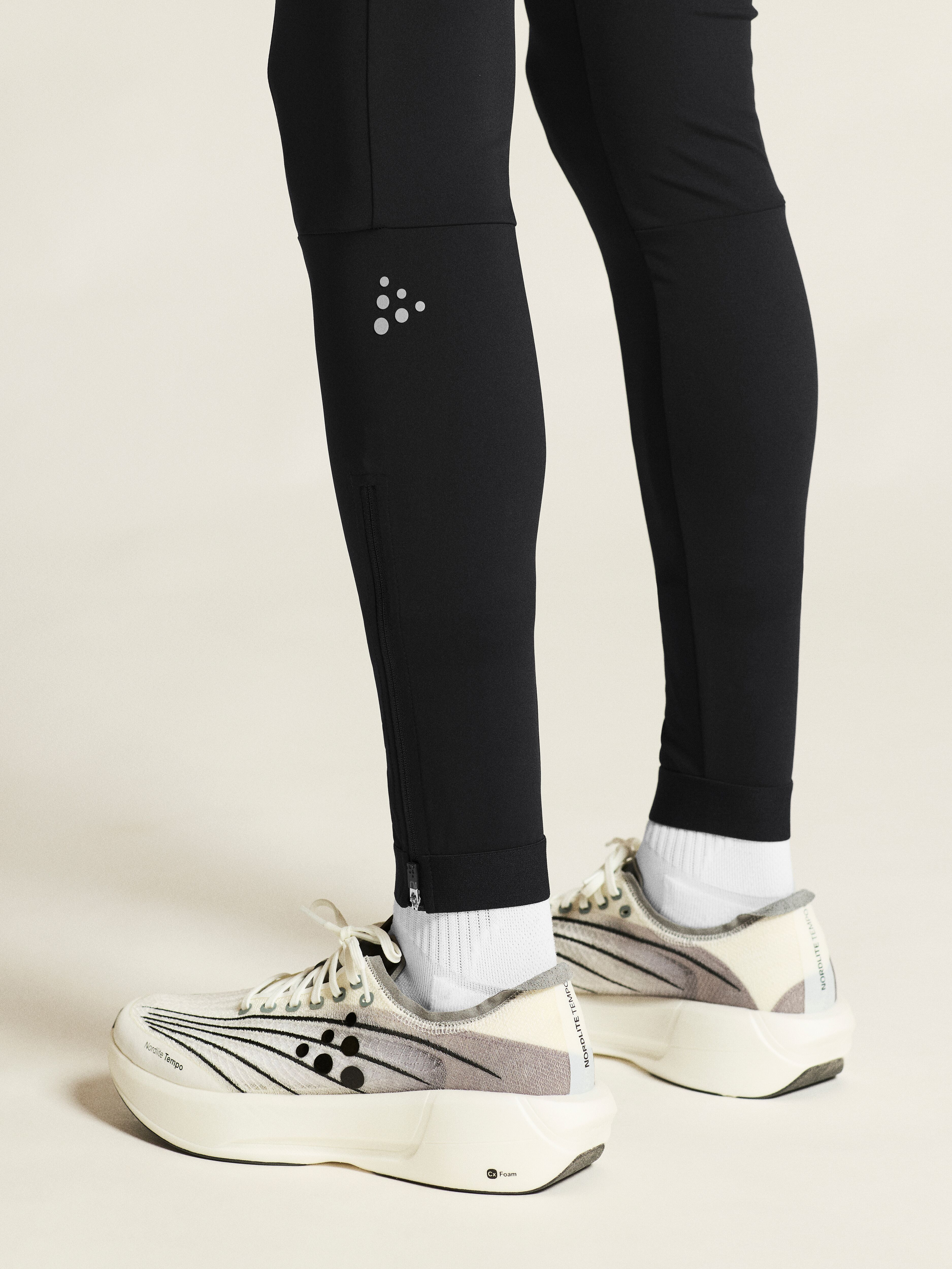 Pánské elastické běžecké kalhoty CRAFT PRO Trail Tights 2 jsou skvělou volbou nejen pro trailový běh v chladnějším počasí. Odolný, vysoce elastický materiál má kompresní efekt. V bederní části jsou tři meshové kapsy. Na pravém stehně potom kapsa se zipem na mobilní telefon. Na koncích nohavic jsou zipy a pružná manžeta pro snazší oblékání.