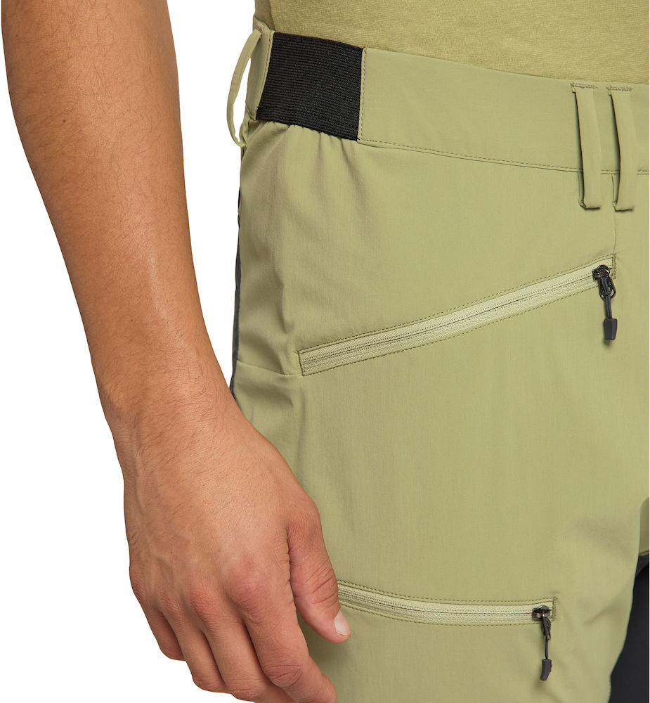 Pánské lehké pohodlné kalhoty vyrobené z elastického softshellového materiálu, který nabízí skvělou ochranu proti větru i vodě, ale zároveň i prodyšnost. Jsou navrženy na letní outdoorové aktivity, volný čas stejně jako na dobrodružství v přírodě. Lehký, pružný materiál kombinovaný v tomto modelu Vám poskytne pohodlí, volnost pohybu, tepelný komfort i ochranu. Flourcarbon free DWR úprava proti vodě i špíně pomůže ochránit Vás a navíc je šetrné i k životnímu prostředí. Slim střih představuje úzce střižené nohavice, které se směrem dolů ještě malinko zužují. Dole mají možnost regulace pomocí velcro pásku.