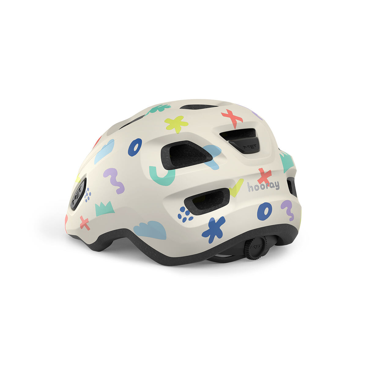 Do každé dětské helmy, kterou vyvineme, vkládáme více než 30 let zkušeností. Helma MET Hooray je bezpečnější, pohodlnější a má spoustu prvků specifických pro batolata, které usnadní život každému rodiči a zároveň ochrání první jízdy další generace cyklistů. Skořepina helmy MET Hooray má v zadní části účelně zploštělou část, aby byla pohodlná v jakékoli dětské sedačce. Pokrývá také velkou část dvou nejcitlivějších oblastí mozku – týl a spánky. Vnitřní tvar obsahuje navržený systém vzduchových kanálů pro usnadnění proudění vzduchu a naše unikátní technologie MET Bimbi Secure zajišťuje, že na fontanele (temenní měkká část) nejsou žádné tlakové body. Díky systému MET Safe-T JR helma poroste s hlavou dítěte. Upínací systém je snadno nastavitelný díky vroubkovanému kolečku a 360° obvodový pásek zajišťuje stabilní a bezpečné usazení. Ráčna s přezkou usnadňuje zajištění helmy a zabraňuje nechtěnému skřípnutí kůže. V MET bereme bezpečnost dětí velmi vážně; všechny výrobní šarže modelu Hooray jsou přísně testovány v naší laboratoři, nic není ponecháno náhodě. Pro doplnění bezpečnostního vybavení jsme do předních ventilačních otvorů helmy přidali síťku proti hmyzu. SPECIFIKACE In-mould polykarbonátová skořepina s EPS vložkou Prodloužené krytí hlavy a integrovaný štítek pro všestrannou ochranu hlavy Ochrana fontanely díky technologii MET Bimbi Secure Ráčna s přezkou zabraňující skřípnutí (Anti-pinch ratchet buckle) usnadňuje zajištění helmy 10 ventilačních otvorů, vnitřní systém vedení vzduchu pro zlepšení ventilace a pohodlí Reflexní zadní nálepka pro zvýšení viditelnosti Design kompatibilní s dětskou sedačkou Upínací systém MET Safe-T JR s 360° obvodovým páskem, který sleduje růst dítěte Popruhy s nastavitelnými děliči zajišťují individuální přizpůsobení Síťka proti hmyzu zabudovaná v předních ventilačních otvorech Pohodlné vycpávky pratelné v ruce