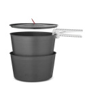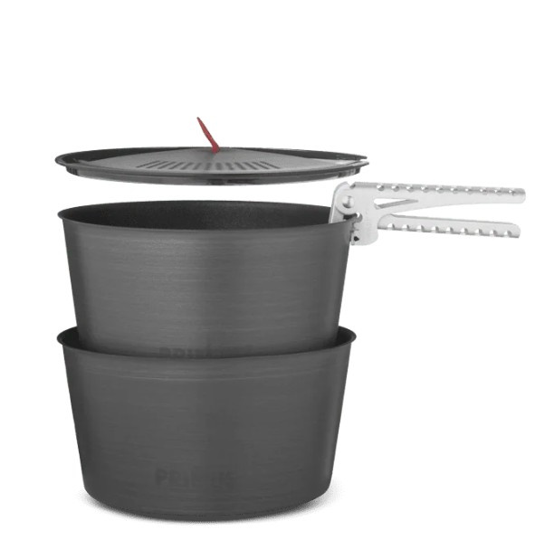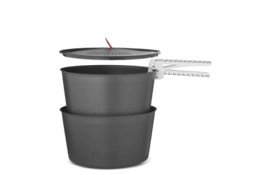 PRIMUS LiTech Pot Set 2,3 L je lehká a odolná sada hrnců s nepřilnavým keramickým povrchem a poklicí s cedníkem, ve které dokážete vařit gurmánská jídla i na dalekých cestách. Tyto hrnce maximálně využívají svou velikost a perfektně do sebe zapadají. Hrnce jsou vyrobeny z lehkého tvrdě anodizovaného hliníku, který dobře vede teplo a pyšní se keramickým nepřilnavým povrchem, díky kterému je vaření a čištění hračka. Lehké víko s cedníkem snadno scedí vodu z těstovin. K manipulaci s hrnci slouží hliníkové kleště. V transportním stavu je jeden hrnec zasunut do druhého a i s poklicí se celý set ukládá do nylonového vaku, tím získáte kompaktní a nedrnčící kempingovou kuchyň. K dispozici ve dvou velikostech, sada hrnců LiTech o objemu 2 x 1,3 l je určena pro 1–3 osoby, zatímco sada hrnců LiTech o objemu 2 x 2,3 l vystačí na 2–5 osob.