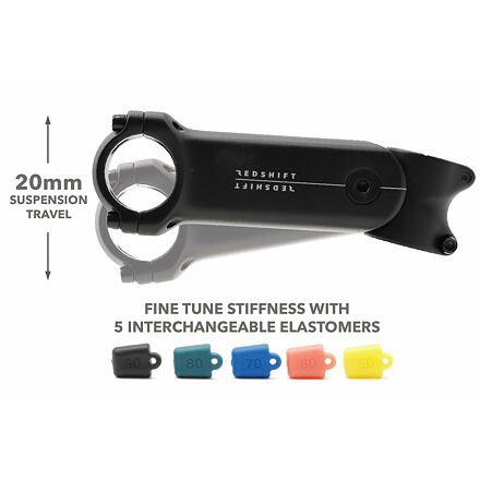 Odpružený představec Redshift je netradiční způsob jak získat na svém gravelu či fitness kole vyšší komfort. Díky integrovaným elastomerům se dá jednoduše nastavit požadovaná tvrdost. Představec je určený pro zahnutá i rovná řidítka o průměru 31.8 a sloupky vidlic 1 1/8. Pracuje se zdvihem cca 2cm. Nárazy a vibrace se pohltí v tomto chodu. Odfiltruje až 70% otřesů oproti standartní variantě. Sklon představce je +/-6 stupňů Balení obsahuje společně s představcem pět elastomerů různé tvrdosti. Doporučujeme nastudovat návod s přiloženou tabulkou pro výpočet a nastavení požadované tvrdosti.