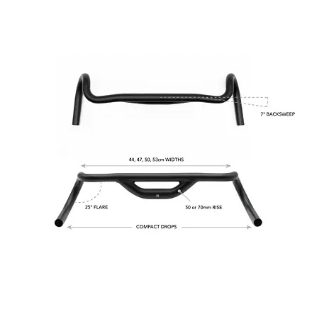 Řídítka Top Shelf zvednou vaši pozici o 50 nebo 70 mm (2 nebo 2,75 palce), abyste získali mimořádně pohodlnou vzpřímenou jízdní pozici. Patentovaný design se vyznačuje jedinečnou konstrukcí, která umožňuje snadnou a bezpečnou montáž tašek a příslušenství. Nakonfigurujte si perfektní nastavení pro cokoli od odpoledního šotolinového dobrodružství po velkolepý vícedenní výlet na kole. Video Klíčové vlastnosti RISE - 50 nebo 70 mm (2 nebo 2,75 palce) rise vytváří vzpřímenější a pohodlnější jízdní pozici při zachování tradiční geometrie kola. KONTROLA - Vyšší umístění dropu poskytuje pohodlnou a bezpečnou polohu rukou, což vám dává kontrolu při procházení nerovným terénem a strmými sjezdy BACKSWEEP - 7° stupně backsweep získáte ergonomickou pozici pro své nejepičtější jízdy na šotolině. FLARE - 25° stupně flare a kompaktní drop znamenají stabilní, aerodynamickou polohu, která je skutečně dostatečně pohodlná PLNÝ ROZSAH ŠÍŘEK - šířky 41, 44, 47, 50 a 53 cm. SKLADOVÁNÍ - unikátní konstrukce poskytuje prostor pro veškeré vaše příslušenství montované na řídítka. Geometrie Specifikace Šířky 41 cm 44 cm 47 cm 50 cm 53 cm Hmotnost (50 mm nebo 2 in verze) 489g 499g 509g 519g 530g Hmotnost (70mm nebo 2.75in verze) 507g 519g 531g 545g 558g Reach 72mm 70mm 68mm 65mm 62mm Sweep 7 deg Drop Flare 25 deg Drop 110mm Průměr 31.8mm Materiál 6061 T6 Aluminum