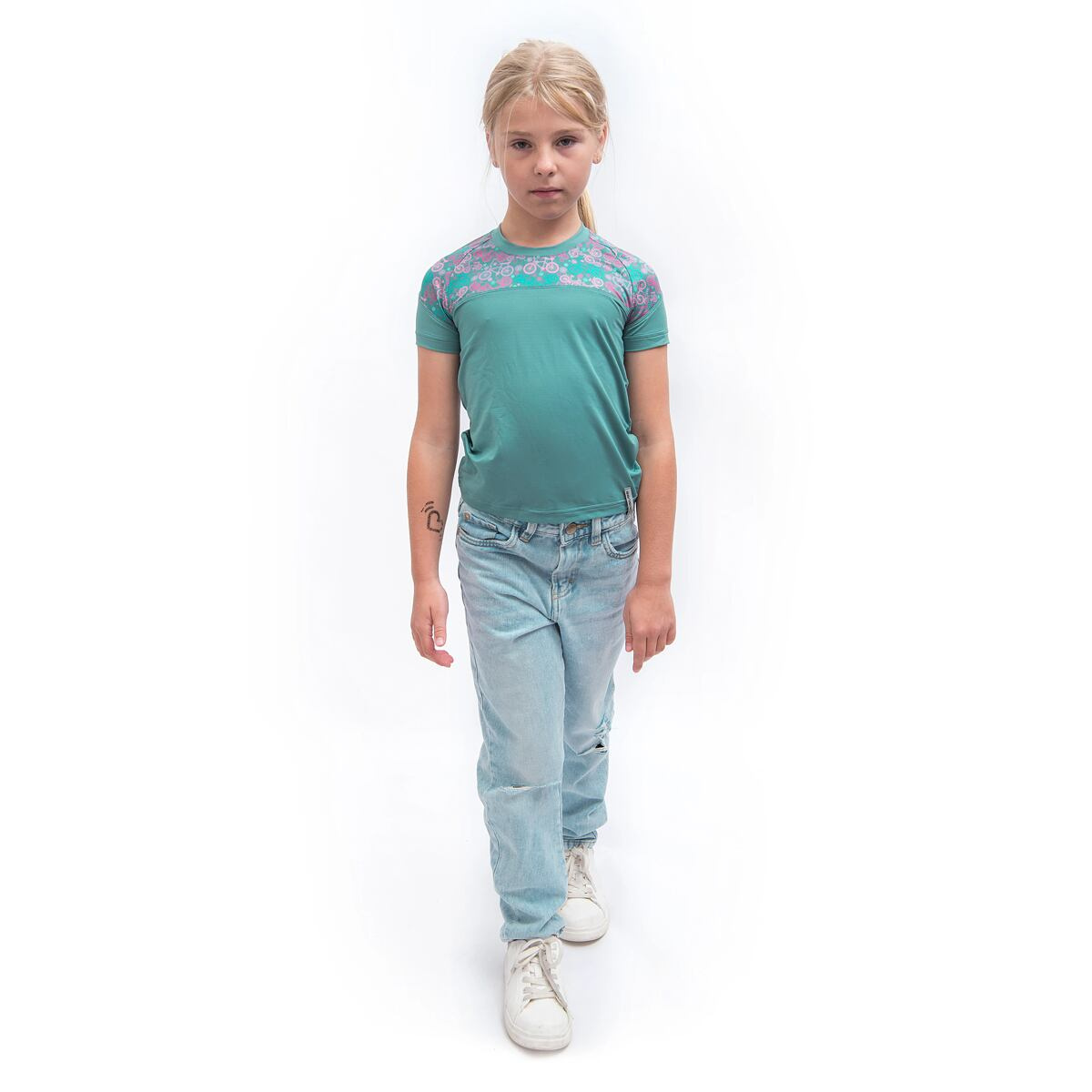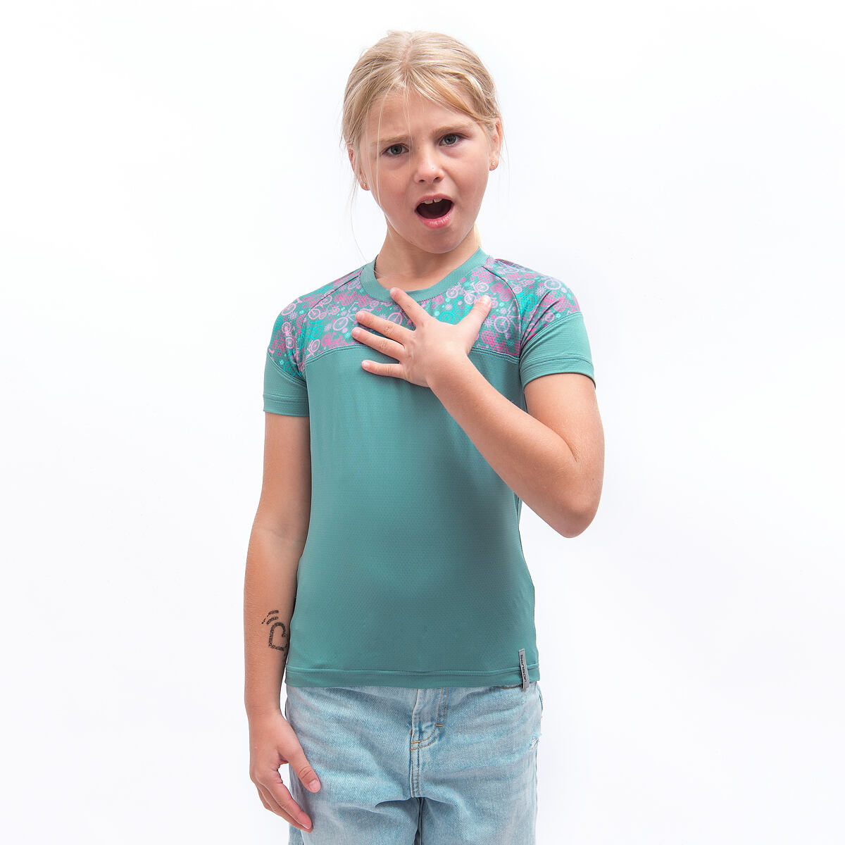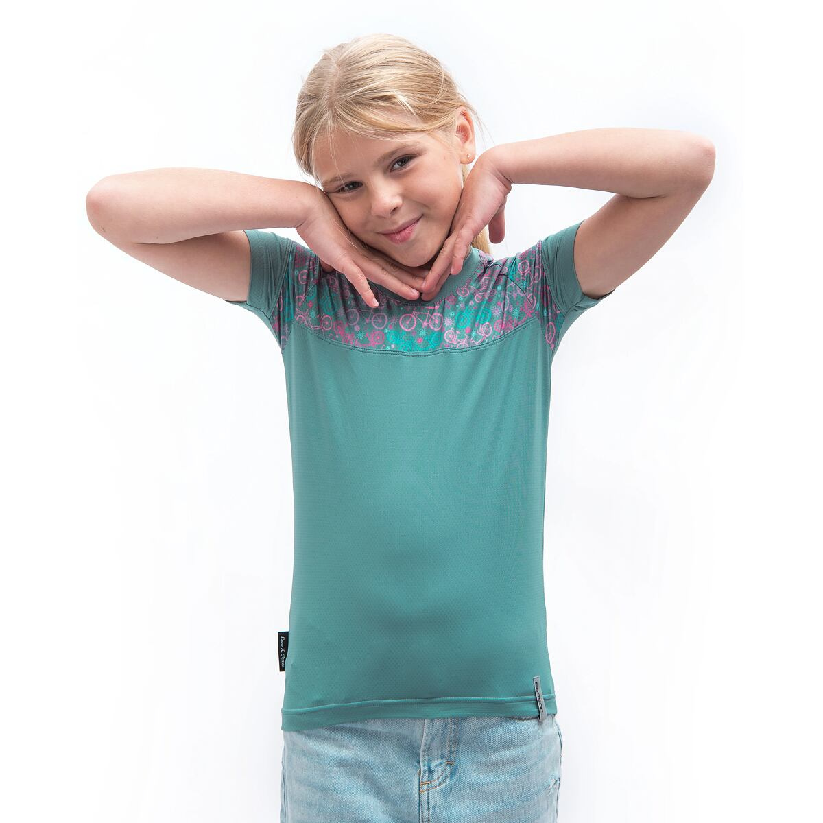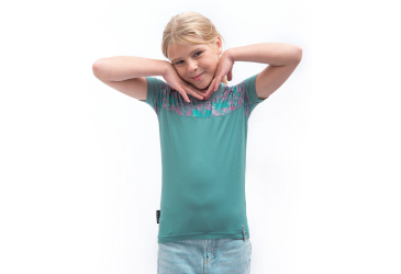 Popis SENSOR COOLMAX IMPRESS dětské UV triko kr.rukáv mint/purple bikes velikost