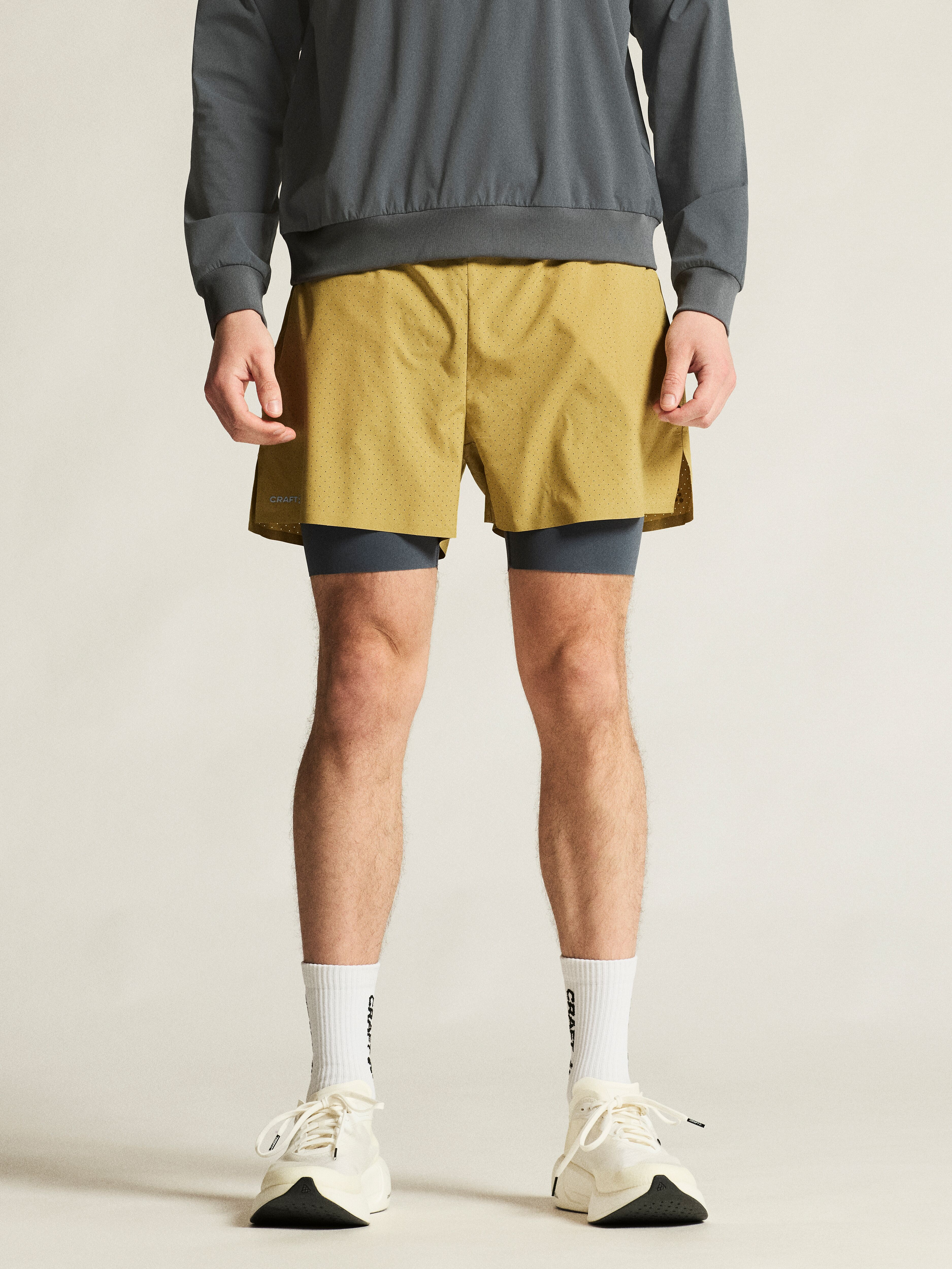 Šortky CRAFT Hypervent 2-in-1 jsou skvělou volbou pro širkou škálu sportovních aktivit. Technicky propracované šortky jsou po celé ploše perforované, což pomáhá efektivnímu odvodu vlhkosti a celkové prodyšnosti. Vnitřní elastické šortky bezpečně drží na svém místě. Komfort a volnost pohybu podporují rozparky po stranách vnějších šortek.