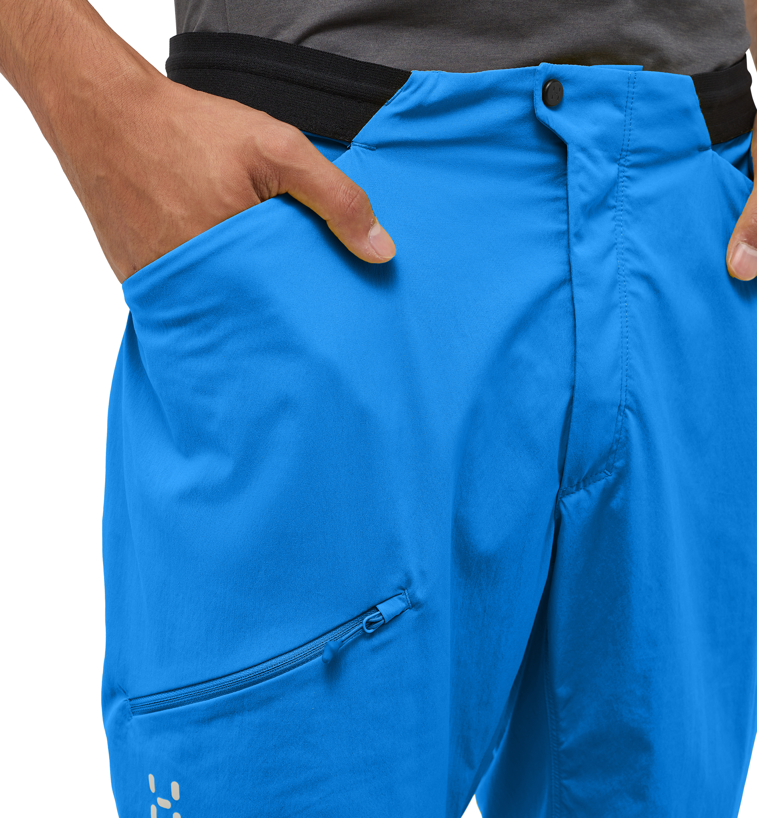 - 2 přední kapsy + 1 kapsička na zip na stehně