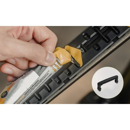 Brašna na horní trubku, navržená speciálně pro platformu Fastfuel, se dá rychle nainstalovat a má přizpůsobitelný interiér s přihrádkami podle vašich potřeb. Otevřené otvory umožňují snadný přístup k vašim věcem. S platformou Fastfuel lze pomocí elastické šňůry zajistit gely a jiné snacky. CAPACITY 0.185 L MATERIAL Engineering grade polymer / EPDM ATTACHMENT Works with FastFuel Platform SIZE 15.04 x 5.45 x 5.6 cm WEIGHT 187 g FEATURES Elastic Cord (L)x1 (S)x2 FastFuel Clip / Cutter x6 Quick Mount Strap System QuickClick® Bag