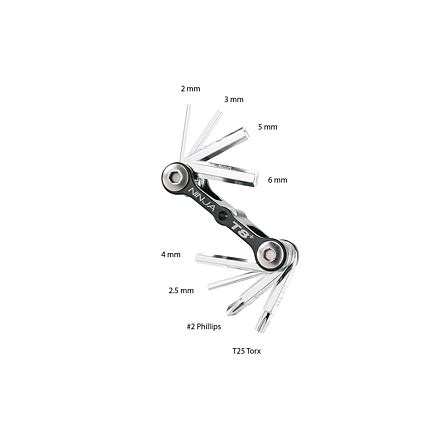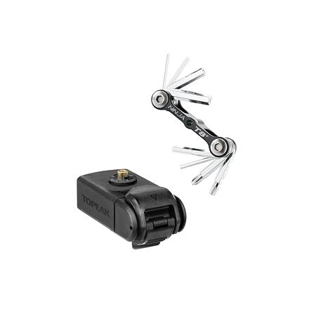 Kompaktní schránka s cyklistickým nářadím, kterou lze upevnit přímo pod košíky na láhev se systémem Cage Mount nebo samostatně pomocí držáku Frame Mount. Řada Ninja využívá zdánlivě nevyužitelný prostor na kole a nejinak je tomu i v tomto případě. Miniaturní nářadí Ninja T8 je tak vždy jednoduše dostupné k použití. Nástroje: • 2 / 2.5 / 3 / 4 / 5 / 6 mm inbusy • T25 Torx® klíče • #2 křížový šroubovák Materiál nástrojů: Tvrzená ocel Materiál těla: Kovaný hliník Uchycení: Ke košíkům Ninja Master+ s držákem Cage Mount Přímo na rám, představec, sedlovku pomocí držáku Frame Mount a pásků Hmotnost: 71 g (Ninja T8) 40 g (ToolBox)