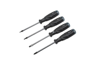 Sada šroubováků pro běžné servisní úkony. Odolná, protiskluzová ergonomická rukojeť zajišťuje pohodlné uchopení, zatímco magnetická špička bezpečně drží šrouby pro snadnou manipulaci. Obsahuje hroty PH2 (křížový), H2 a H3 (imbus/hex) a 5mm plochý (drážkový) hrot.