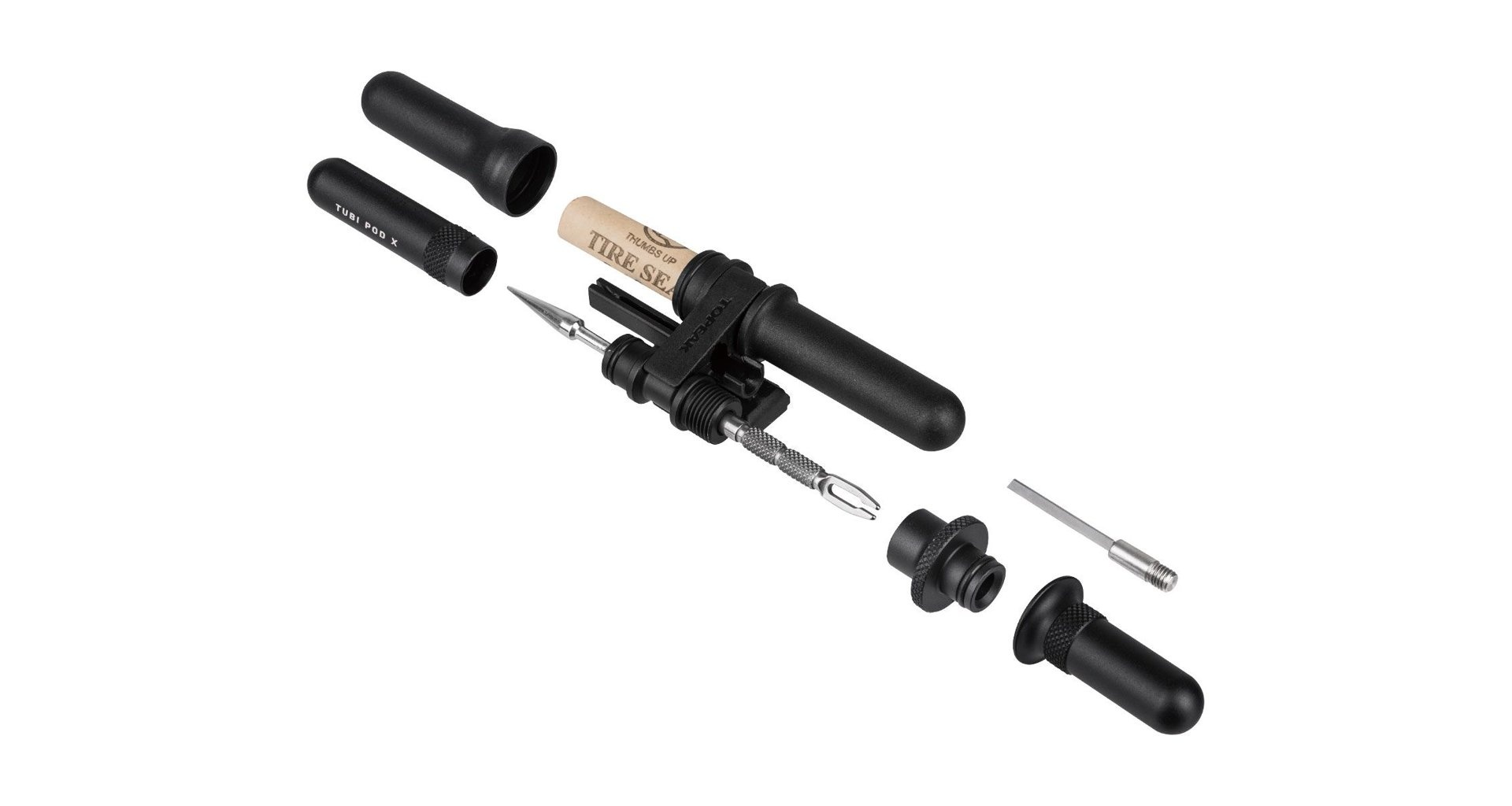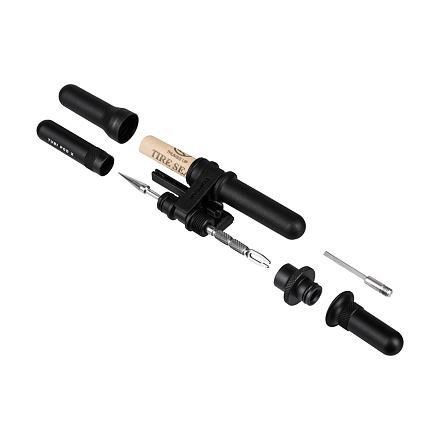 Kompaktní sada na opravu bezdušových plášťů. Nástroje pro opravu se ukrývají uvnitř hliníkového modulu, zatímco pětice knotů se ukládá do lehkého polymerového pouzdra. Oba pody se připevňují k montážnímu modulu, který lze připevnit k rámové trubce nebo sedlovce - vždy připraveno na akci. Nástroje: 2-in-1 tire reamer / plug insertion tool, knife, air-stop Materiál nástrojů: Nerezová ocel Materiál podů: Hliník / Engineering grade polymer Uchycení: Nastavitelný nylonový pásek Umístění: Rámová trubky, sedlovka Podrobnosti: 5 kusů knotů součástí balení (3.5mm x 10cm) Rozměry: 11.6 x 4.3 x 2.4 cm Hmotnost: 63 g