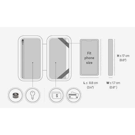 Pevná peněženka s pouzdrem na mobilní telefon. Měkká sametová vnitřní podšívka ochrání vaše věci, peněženka je kompaktní a dobře organizovaná. Je vybavena vnitřními / síťovanými kapsami na zip, takže udrží vaše kreditní karty, bankovky, mince a klíče na svém místě a usnadní přístup díky širokému otvoru na zip. Pružné silikonové pásky bezpečně udrží váš smartphone na místě, když je peněženka otevřená. Dostatečně kompaktní, aby se vešla i do kapsy dresu. Materiál: Phthalate-Free PVC / EVA / Polyethylene / Silicone / Aluminum, Sweatproof Rozměry: 17.9 x 9.4 x 3.38 cm Hmotnost: 122 g Kapacita: Pro smartphony ≤ 17 x 8.8 x 1.7 cm, platební karty, bankovky, mince a klíče