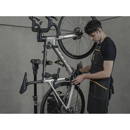Jedinečný závěsný systém pro servisní stojan na kolo. Nastavitelná tříbodová svorková konstrukce používaná se stojany na opravu jízdních kol zajišťuje stabilitu a eliminuje poškození tenkostěnných a aerodynamických trubek. Nastavitelná délka svorky, 3 polohy upnutí kontaktů a nastavitelné gumové pásky se hodí na jakýkoli rám jízdního kola a upevňují se na servisní stojan blíže k těžišti kola, čímž se zlepšuje celková stabilita. Přiložený stabilizátor řídítek je délkově nastavitelný tak, aby vyhovoval většině jízdních kol a udržel jejich řídítka a přední kolo v bezpečí. Kompatibilní se stojany Topeak PrepStand Pro, PrepStand Elite nebo jinými servisními stojany s upínacími čelistmi. Uchycení: Horní a sedlové trubky Skládání: Nastavitelná délka svorek Rozměry: 62.8 x 14.5 x 31.5 cm (otevřené svorky), 38.3 x 14.5 x 12.5 cm (zavřené svorky) Hmotnost: 1.3 kg Materiál: Hliník / Engineering grade polymer Nosnost: 20 kg Další informace: Součástí je stabilizátor řidítek
