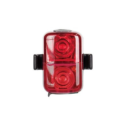 Kompaktní a lehké zadní světlo na kolo se dvěma vysoce svítivými LED a nabíjením přes USB. Snadné upevnění pomocí gumového pásku na sedlovku, brašny Topeak nebo cyklistickou helmu. Maximální světelný tok: 30 Lumenů Zdroj světla: RR: 2 super bright red LED’s RY: 1 super bright red LED & 1 super bright yellow LED Baterie: 3.7V 250mAh (integrovaná) Režimy svícení: 3 hr (Constant) 3.5 hr (Upper : Constant / Lower : Blinking) 30 hr (Blinking) Nabíjení: Micro USB / 2 hod. Vstup: 5V 500mA Materiál světla: Injection molded polymer Upevnění: gumový pásek, na sedlovku (ø25.4 - ø34.9mm), brašny Topeak, cyklistická helma Voděodolnost: IPX 6 Rozměry: 3.9 x 3.7 x 2.1 cm Hmotnost: 17g