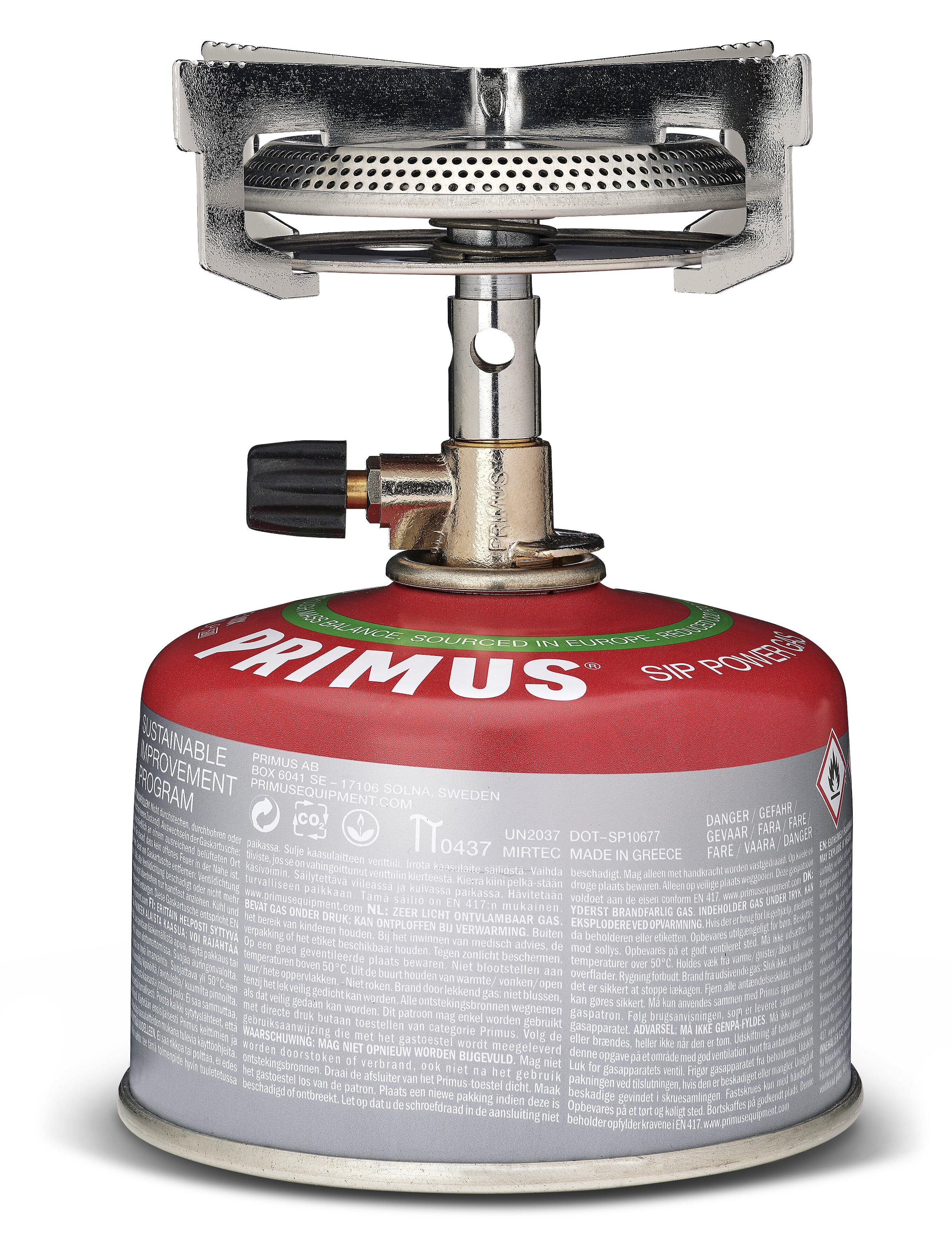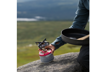 Primus Mimer Stove je robustní plynový vařič, který byl uveden na trh již v 80 letech 20 století. Je to spolehlivá volba na kempování a kratší tůry, kdy nezáleží na každém gramu, ale na gurmánském zážitku. Díky hořáku o velkém průměru a čtyřem stabilním ramenům, je ideální pro vaření s většími hrnci a pánvemi pro 1–3 osoby. Rovnoměrně rozprostřený plamen o výkonu 2800 W, uvede 1 litr vody v hrnci Regular Pot za 3 min. 30 s. Plynová kartuše není součástí Vařiče. Vždy dodržujte pokyny pro bezpečnou manipulaci a seznamte se pečlivě s obsluhou vařiče podle přiloženého návodu.