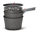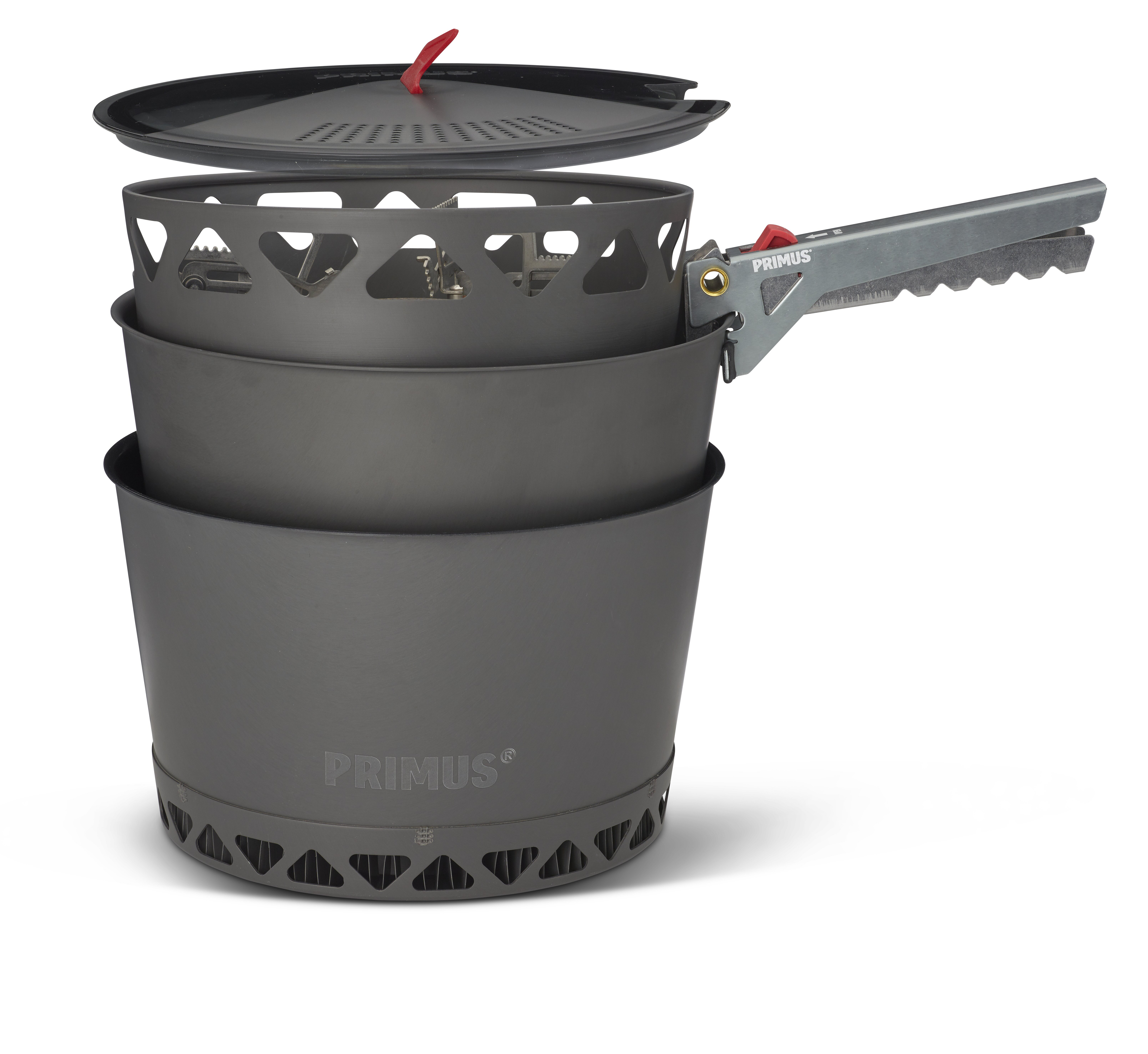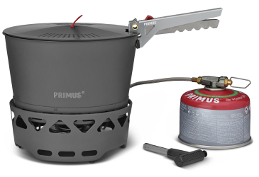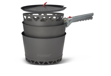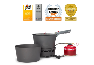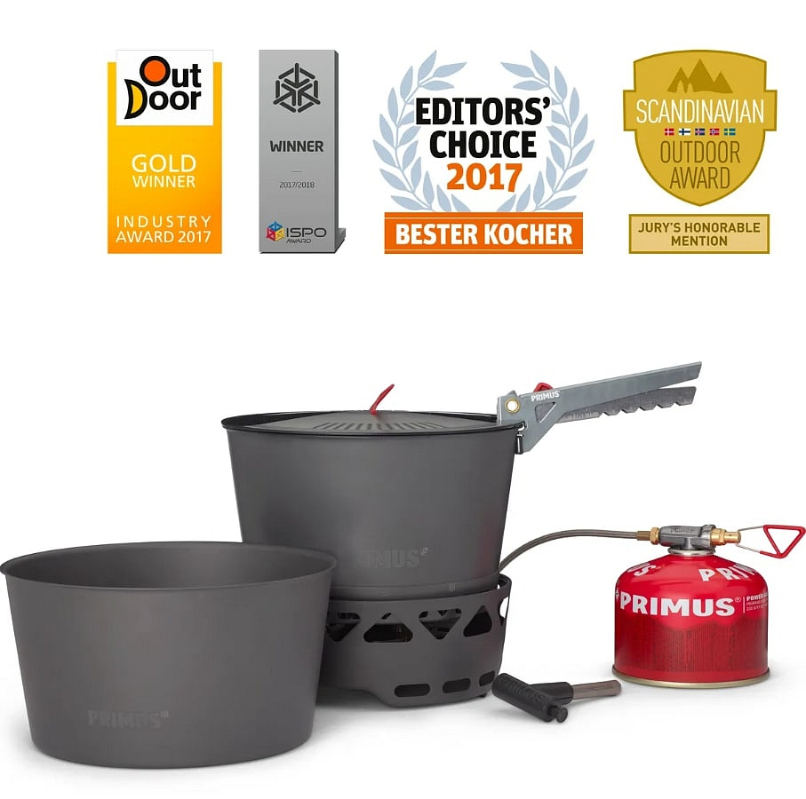 Sada vařičů PrimeTech obsahuje turistický vařič s větruodolným hořákem a technologií laminárního proudění pro stabilní a nízké těžiště. Sada obsahuje dva hliníkové hrnce s povrchovou anodizací o objemu 2,3 l. Jeden s tepelným výměníkem a keramickým nepřilnavým povrchem pro náročnější vaření a druhý bez keramického vnitřního povrchu - ideální pro ohřev a servírování. Sada dále obsahuje průhledné víko s vestavěným sítkem, samostatný - externí piezoelektrický zapalovač, kleště na hrnce s aretací, úložný transportní vak a skládací hliníkový tepelný reflektor pro podložení vařiče, díky tomu můžete bezpečněji vařit i na citlivých površích. Podpěrná ramena vařiče lze vyklopit a použít i nádoby o větším objemu - průměru.
