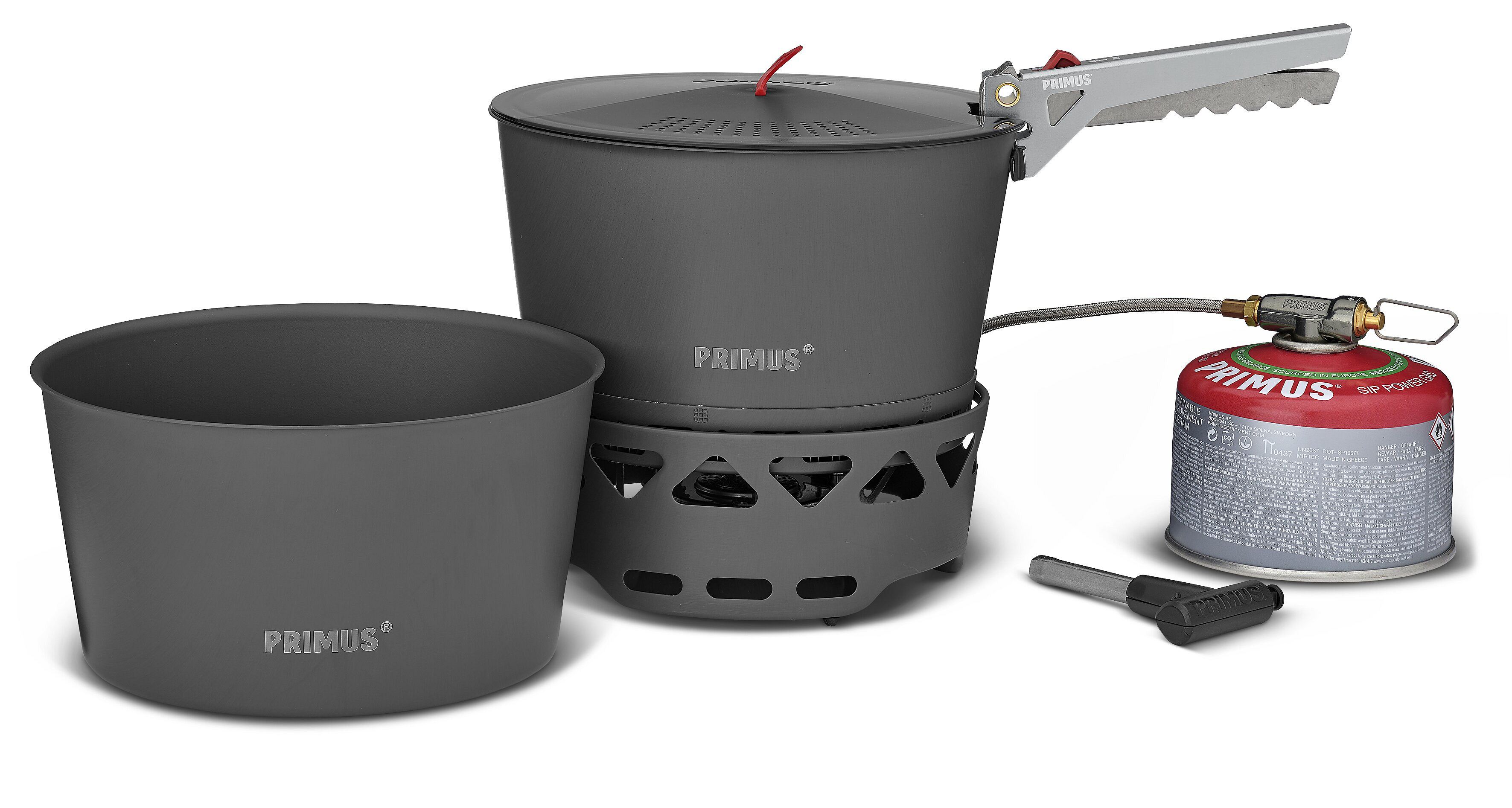 Vařič PrimeTech je navržen pro snadné použití, od sestavení až po vaření a balení. Jednoduše připojte plynovou kartuši k přívodní hadici a zapalte hořák pomocí dodaného piezoelektrického zapalovače, který funguje za každého počasí. V jednom hrnci uvařte těstoviny, sceďte je pomocí poklice s vestavěným cedníkem a poté pokračujte ve vaření jídla v druhém hrnci. Po dokončení se vše úhledně sbalí do úložného vaku pro snadnou přepravu.