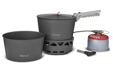 PRIMUS PrimeTech Stove Set II 2.3L je plynový vařič integrovaný do stabilní základny, která funguje jako závětří. Tato sada pro 2 - 5 osob je vhodná nejen pro ryclý ohřev vody, ale i k plnohodnotnému vaření, snadno se sestavuje, balí, přenáší a je vybavena větruodolným hořákem s nízkou spotřebou paliva, díky tomu je vaření vody nebo příprava hlavního chodu rychlá a bez námahy.