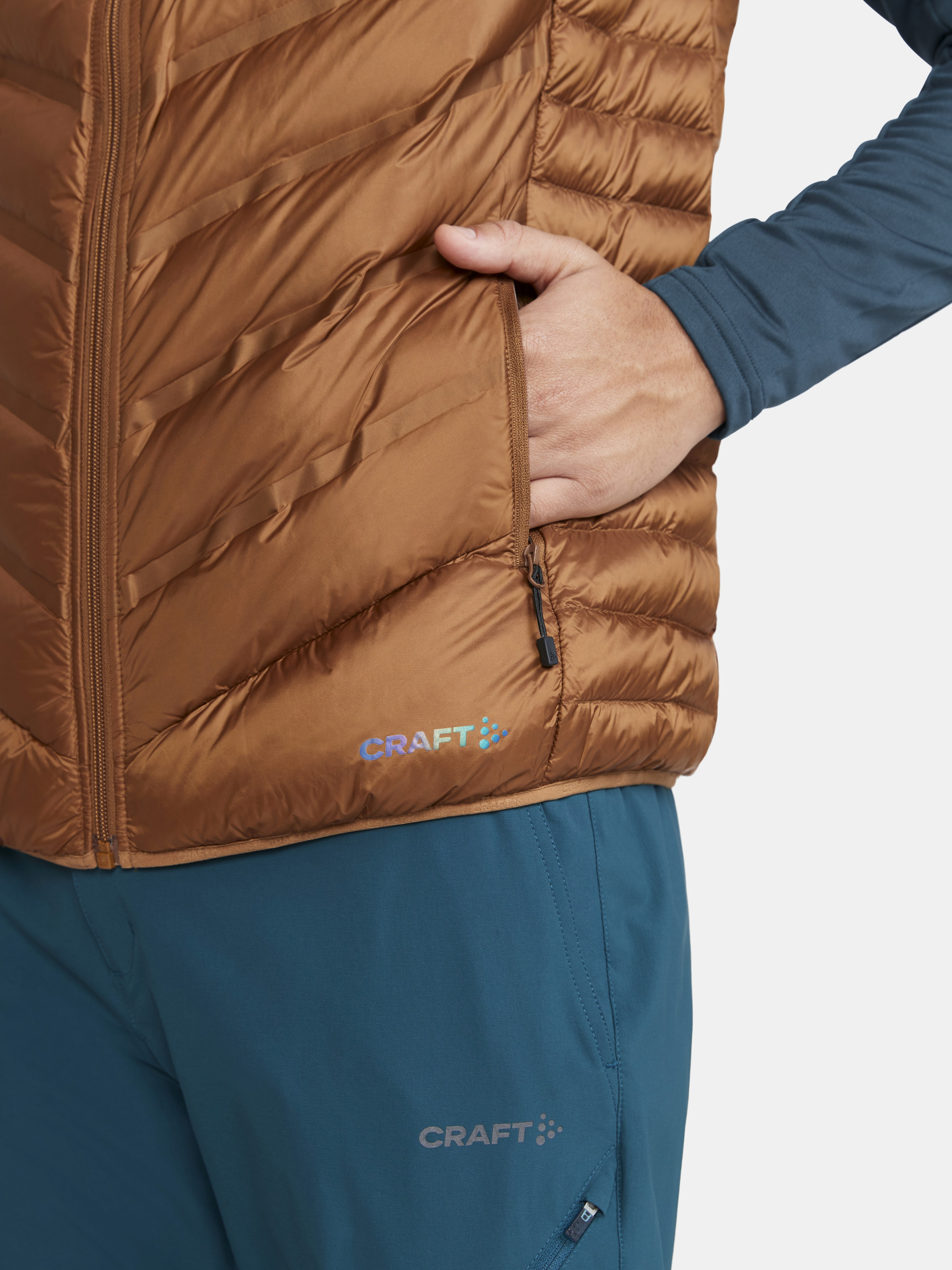 Pánská péřová vesta CRAFT Lt Down zateplená kachním peřím je určená pro ty, kteří se potřebují před a nebo po tréninku či závodě zahřát. Lze ji pochopitelně použít i na běžné nošení.