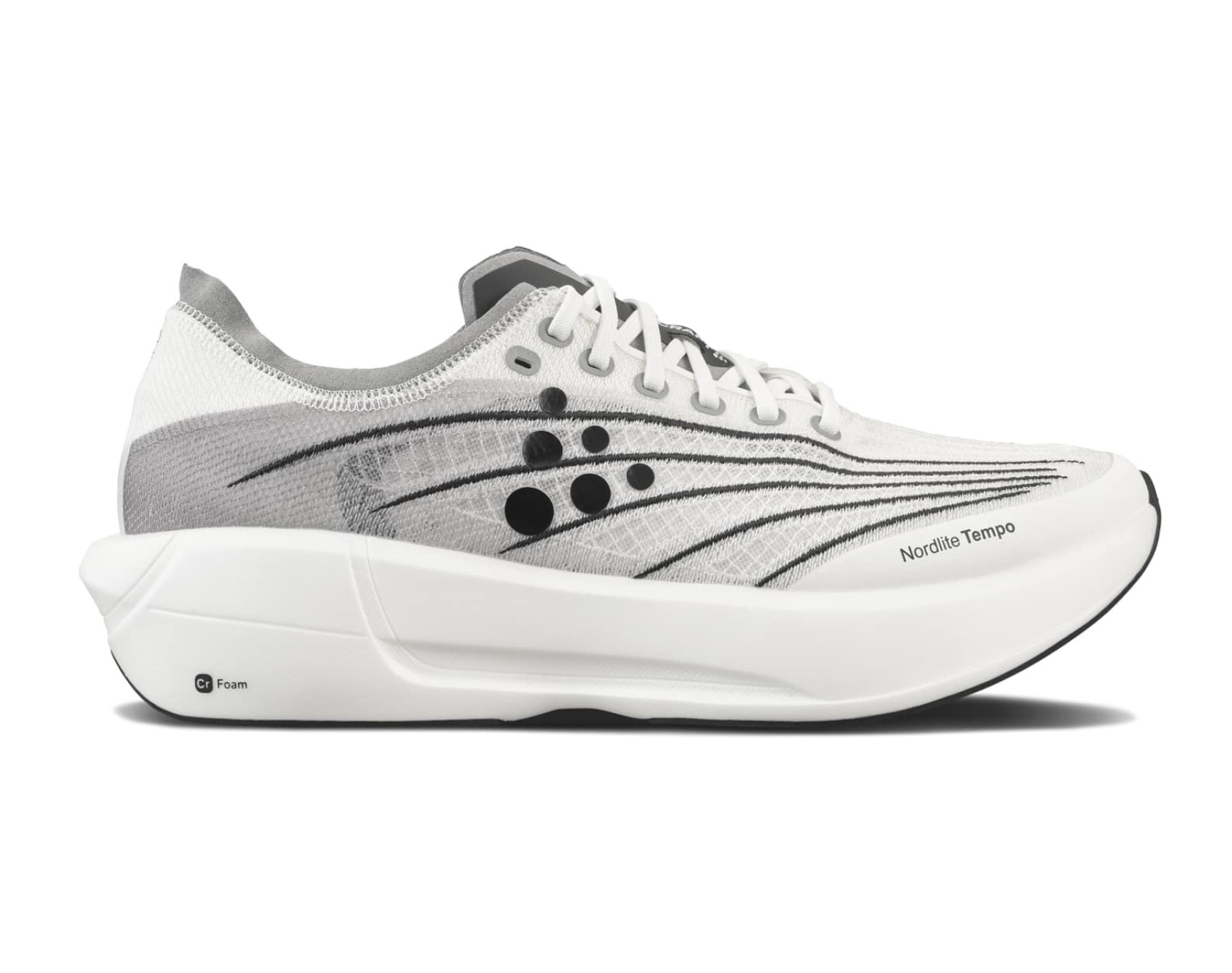 Dámská silniční bota CRAFT Nordlite Tempo je určena primárně pro ty, kdo hledají maximální rychlost, stabilitu a zároveň tlumení. Bota využívá novou pěnu v mezipodešvi Cr Foam Pro™. Ta kombinuje dusíkovou pěnu s Pebaxem (15 %), což vytváří skvělou kombinaci vysoké stability, optimální míry tlumení a maximální síly do odrazu. To vše při zachování minimální váhy. Podešev využívá směs HyperGrip™, která zajistí jistý grip na silnici. Velmi lehký jednovrstvý svršek, zpevněný TPU je maximálně prodyšný, ale také odolný a zároveň pohodlný.