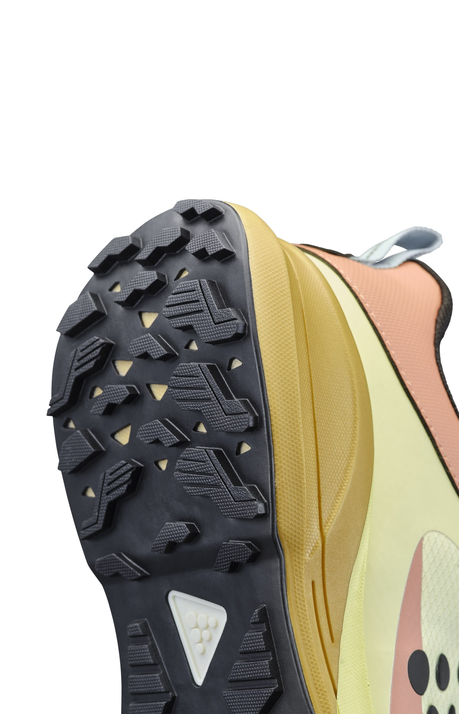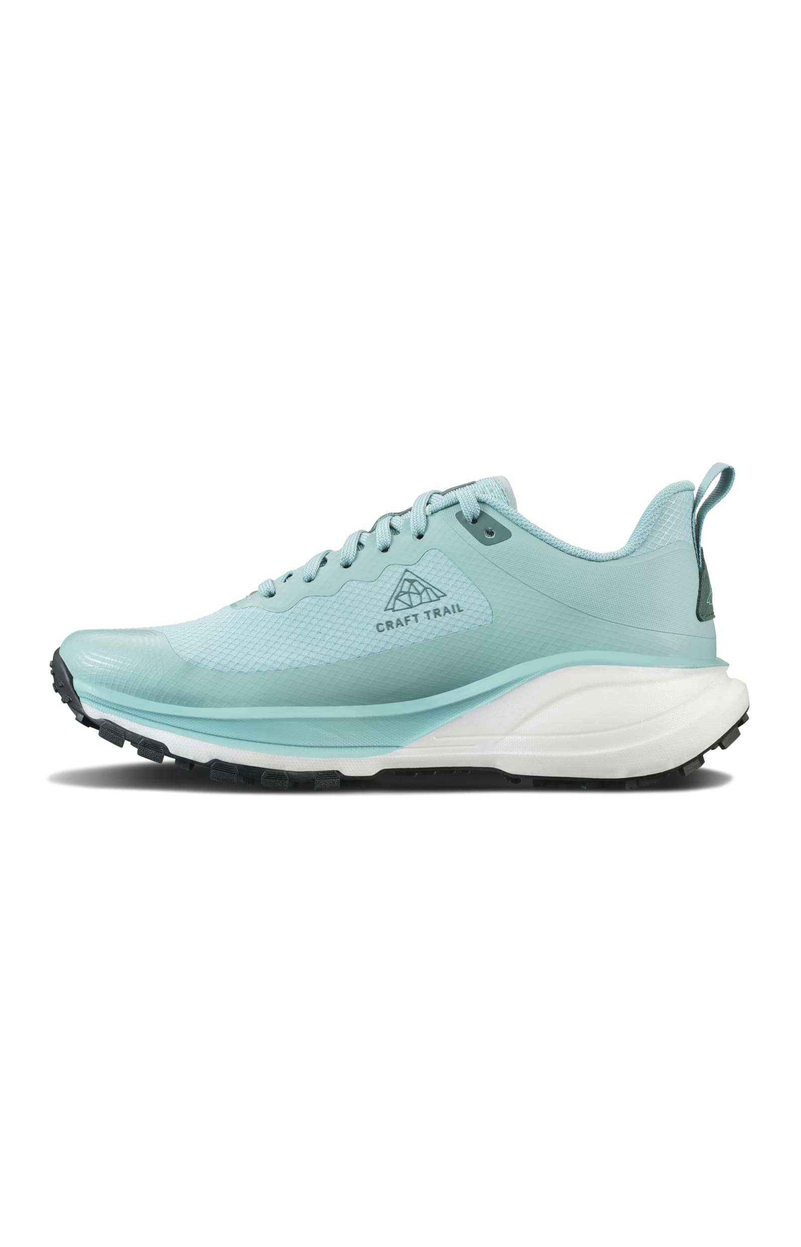Trailová běžecká bota CRAFT Pure Trail X je vybavena Cr Foam™ (pěnou) v mezipodešvi, která poskytuje vysokou míru tlumení, stabilitu, výbušný odraz a to vše se sníženou hmotností. Pod střední a přední částí chodidla je rock plate, který zvyšuje stabilitu a ochranu chodila. Podešev se středně vysokým vzorkem spolehlivě zdolává i náročnější terén bez ztráty trakce. Svrchní materiál je vyroben z recyklovaného polyesteru a má ripstopovou úpravu pro zvýšení odolnosti proti roztržení. Ještě větší odolnost přináší okop boty s TPU.