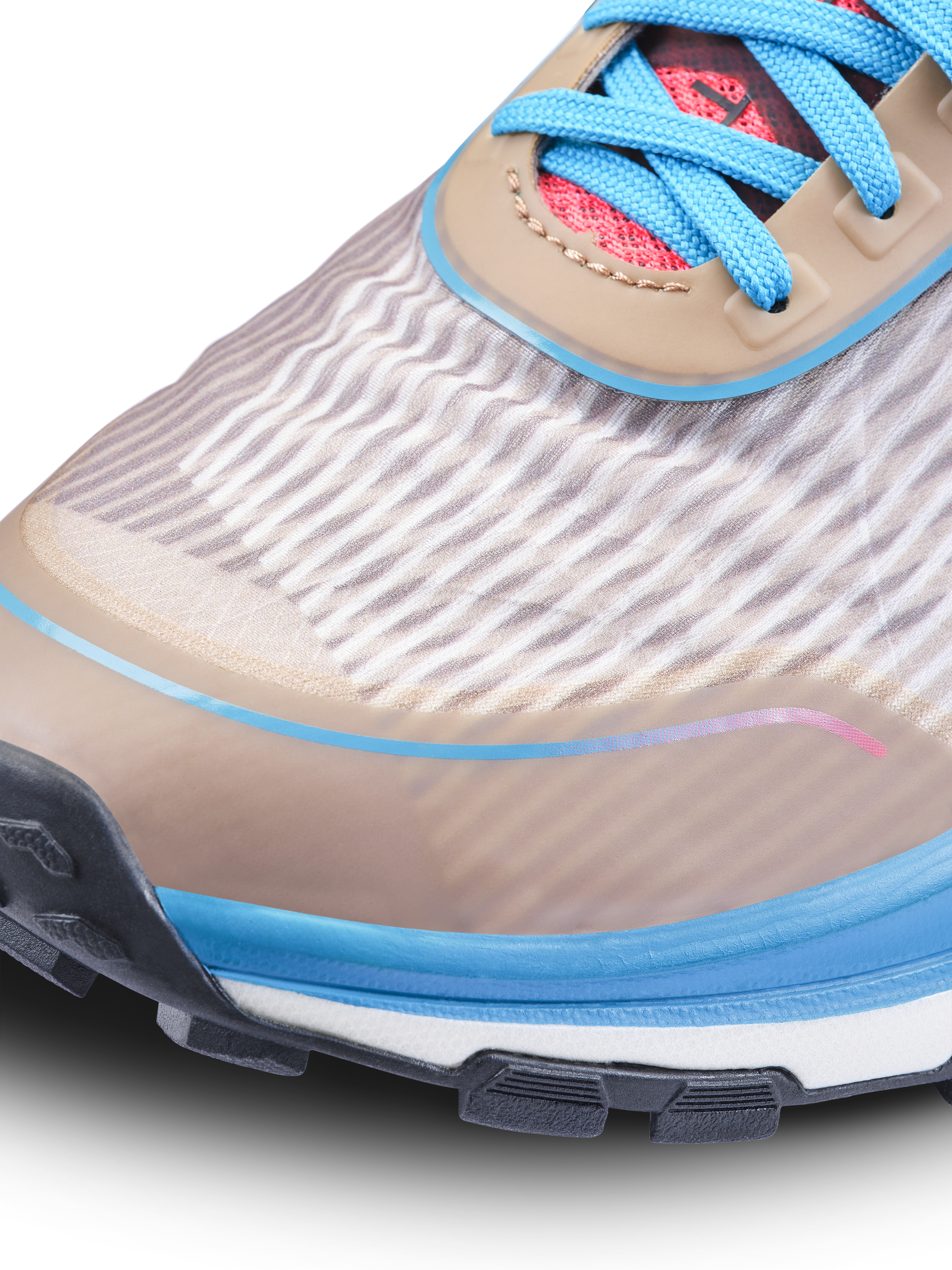 Svršek je tvořen jednovrstvou TPU síťovinou, která je extrémně lehká, flexibilní a přitom odolná. Pure Trail je čistou ukázkou inovace, která běžcům poskytuje maximální výkon a komfort zároveň.