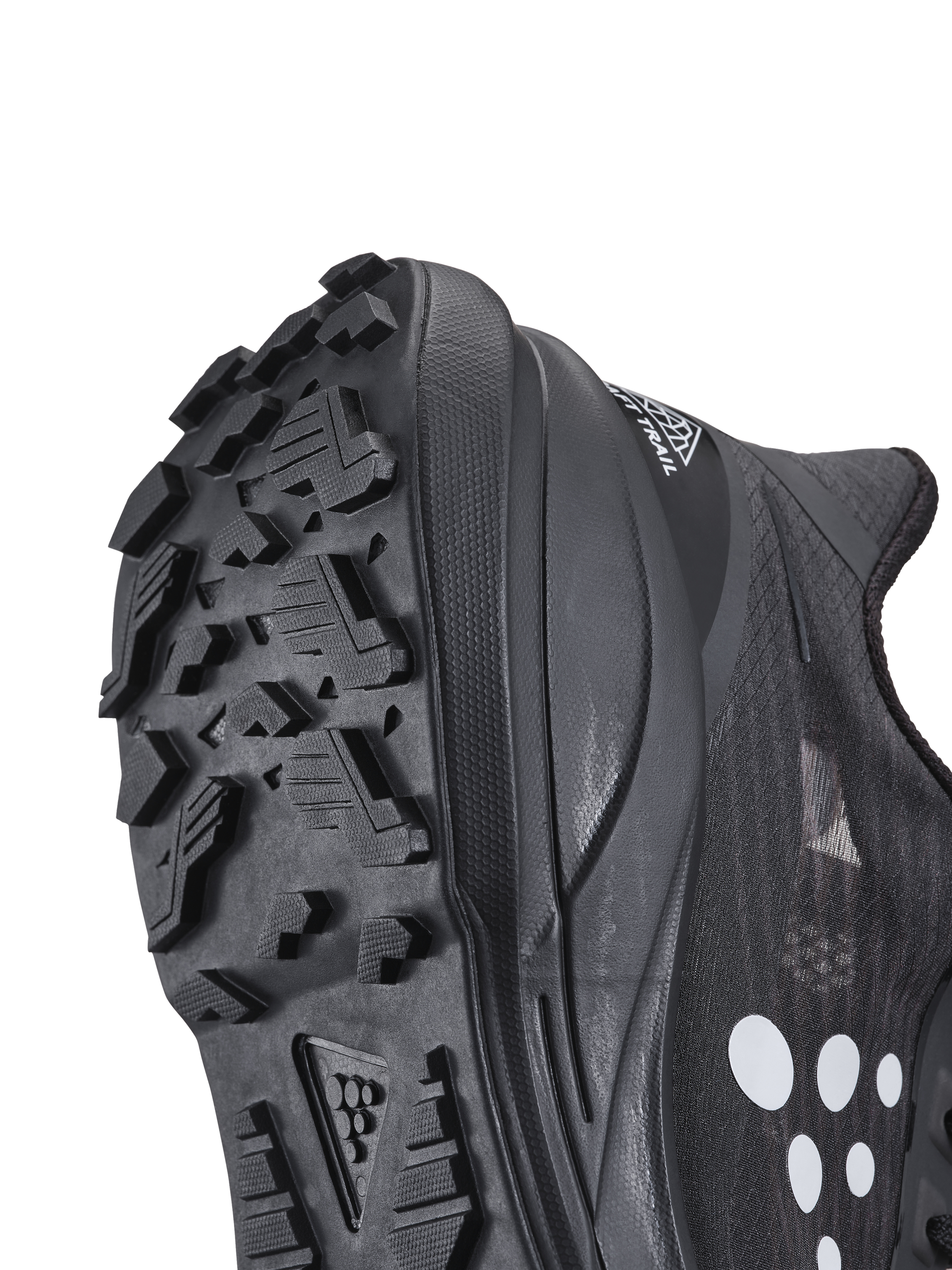 Prémiová trailová běžecká bota CRAFT Pure Trail využívá novou pěnu v mezipodešvi Cr Foam™, která poskytuje velmi dobré tlumení a stabilitu při snížené hmotnosti, ale také dynamický odraz.