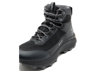 HAGLÖFS L.I.M HORIZON HIKE GTX MID jsou lehké a vodotěsné kotníkové boty pro rychlé dobrodružství na i mimo turistické stezky. Jsou vyrobeny z ripstop tkaniny laminované prodyšnou, bez-PFAS GORE-TEX ePE laminací a vyztužené odolnými TPU fóliovými obsázkami - kombinace, která udržuje vaše nohy suché a pohodlné, aniž by vás zatížila. Jsou vybaveny na zvládání mokrého a proměnlivého terénu, mají flexibilní, stabilní a vysoce odpružené Vibram Traction Lug podrážky s vylepšenou trakci. *Klínové jazyky zabraňují vnikání špíny a nečistot. *Zvýšení trakce až o 25 % (testováno @Heelux pomocí jejich vlastního KIT Traction nastavení) ve srovnání s podrážkami s obyčejnými výstupky, v závislosti na různých typech terénu a různých kombinacích mezi podrážkami a mikro-výstupky, dostupnými v kolekci Traction Lug.